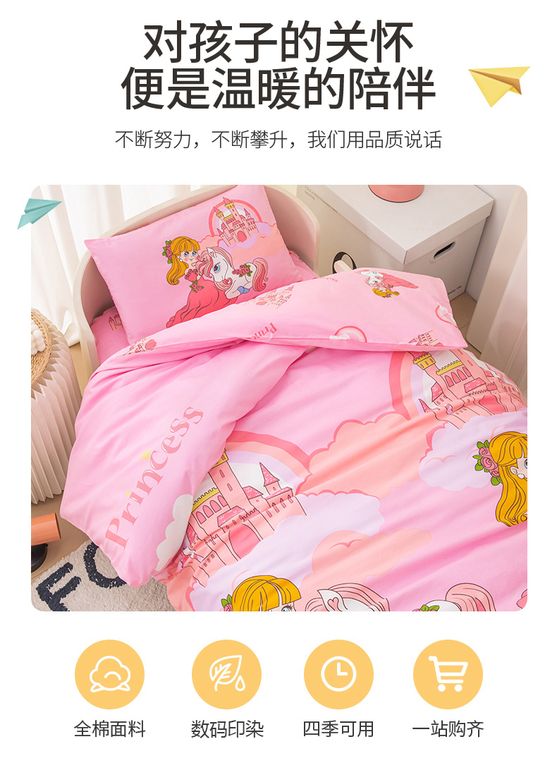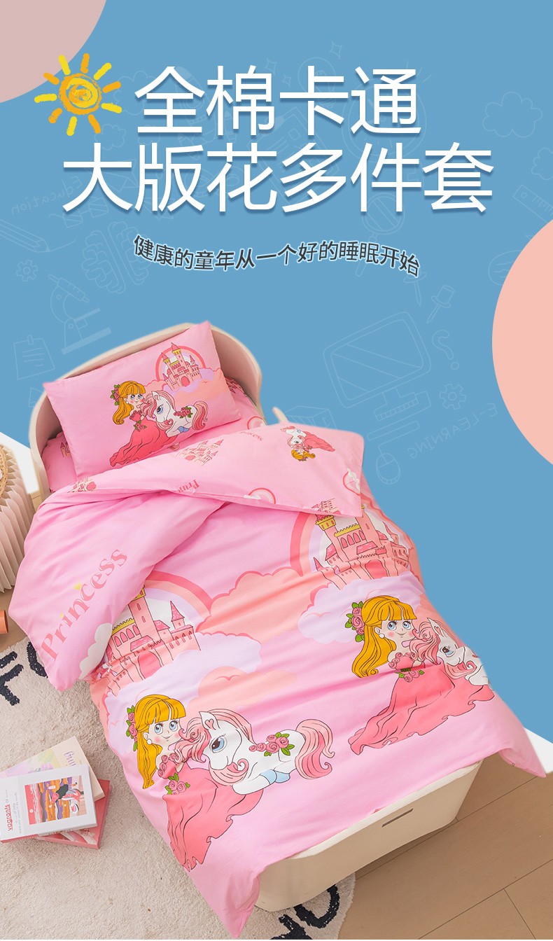 当前位置: 91家纺网 > 商品网购 > 床品套件 > 六件套 > 嗨皮宝贝 2023新款全棉卡通大版花幼儿园三件套六件套 小公主安琪