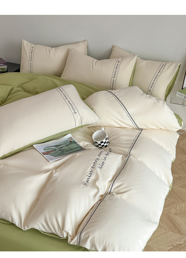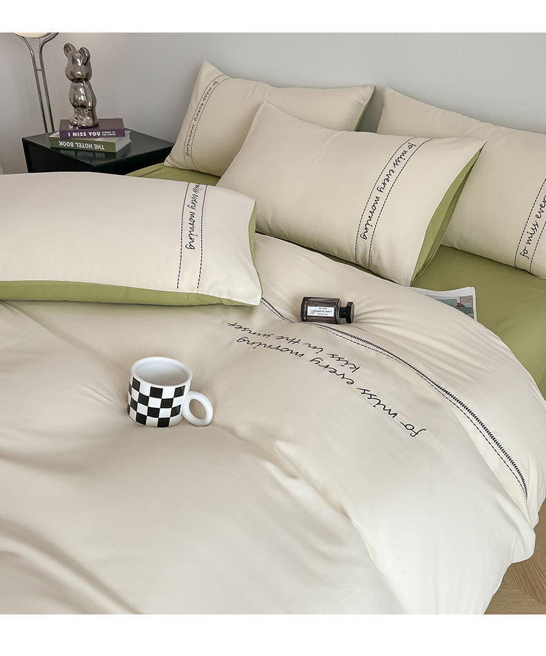 尤米 2023新款磨毛刺绣纯色双拼卡洛森系列--单被套 奶茶+果绿