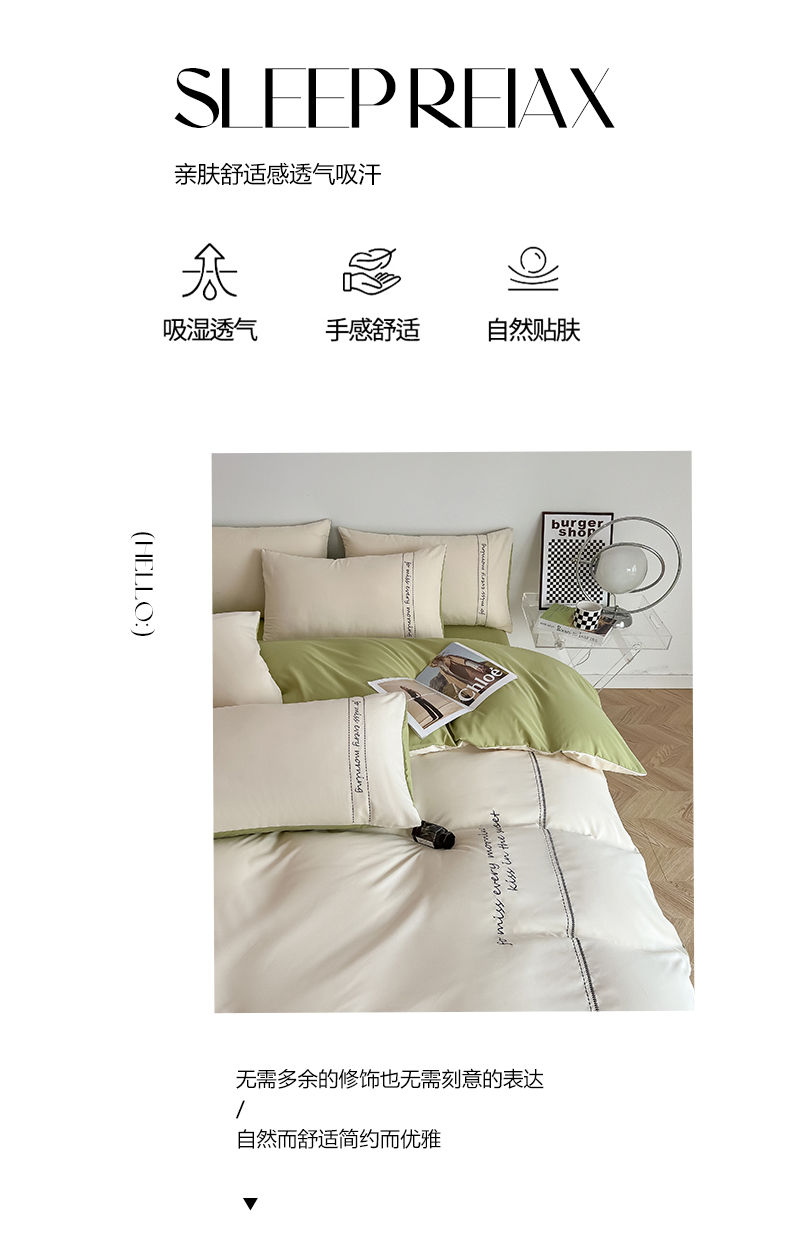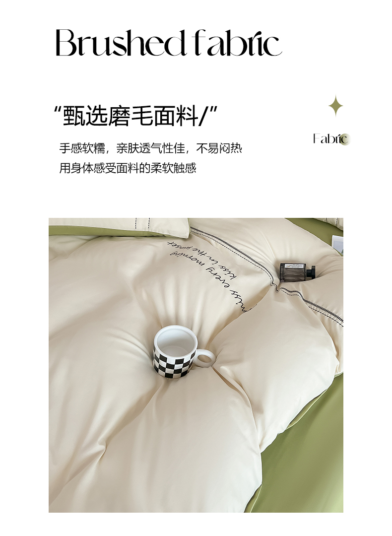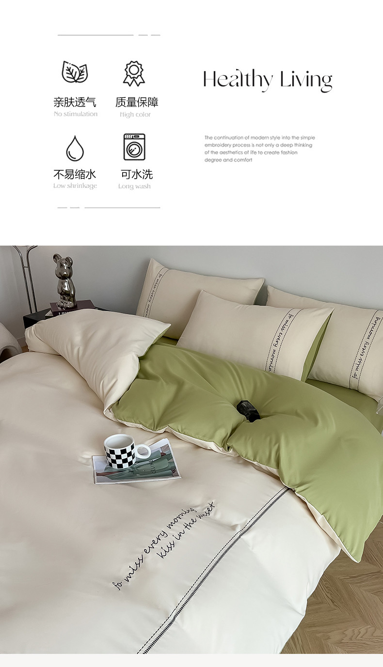• 91家纺网 家纺一手货源 找家纺 尤米 2023新款磨毛刺绣纯色双拼卡洛森系列--单被套 奶茶+果绿