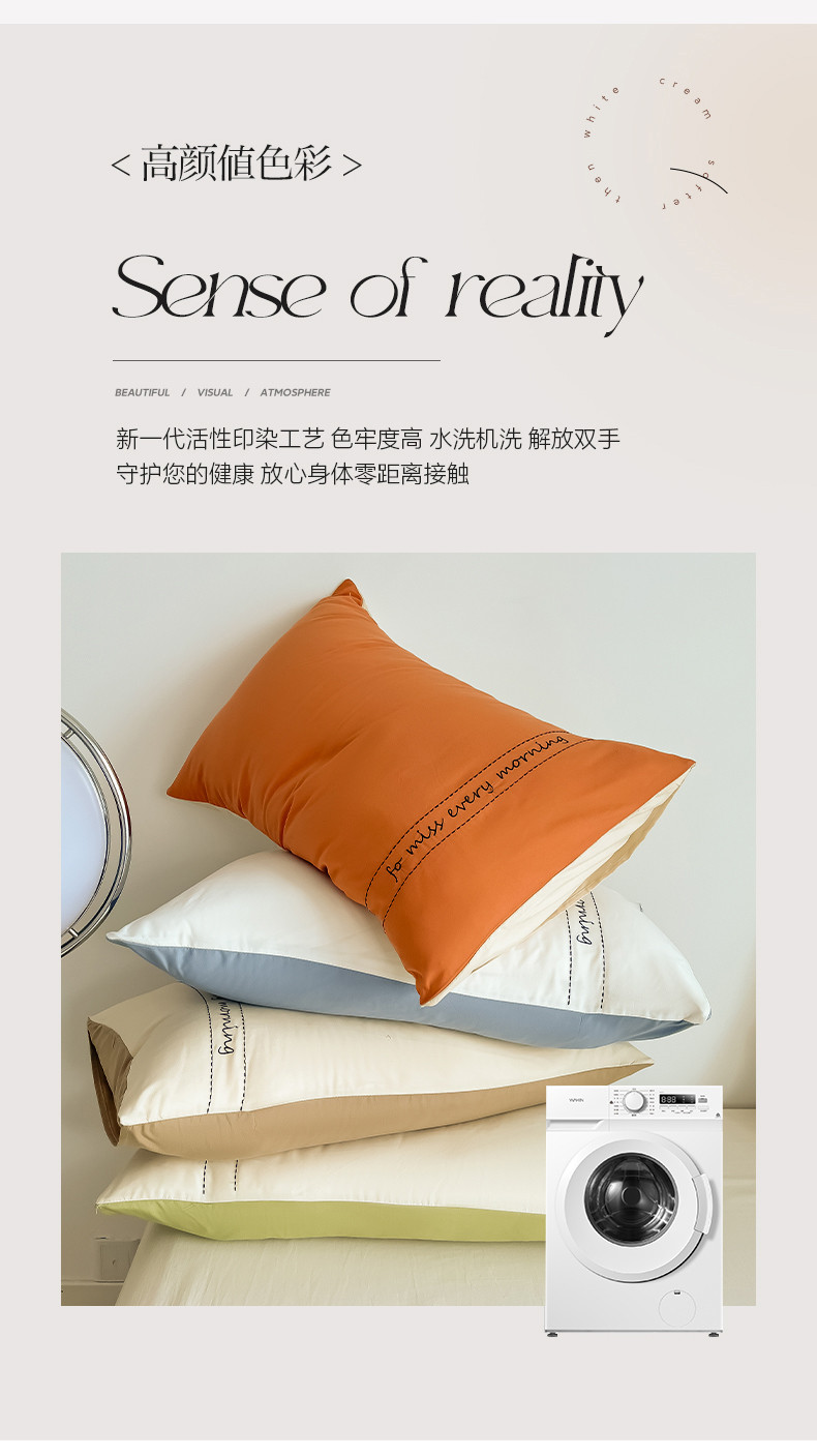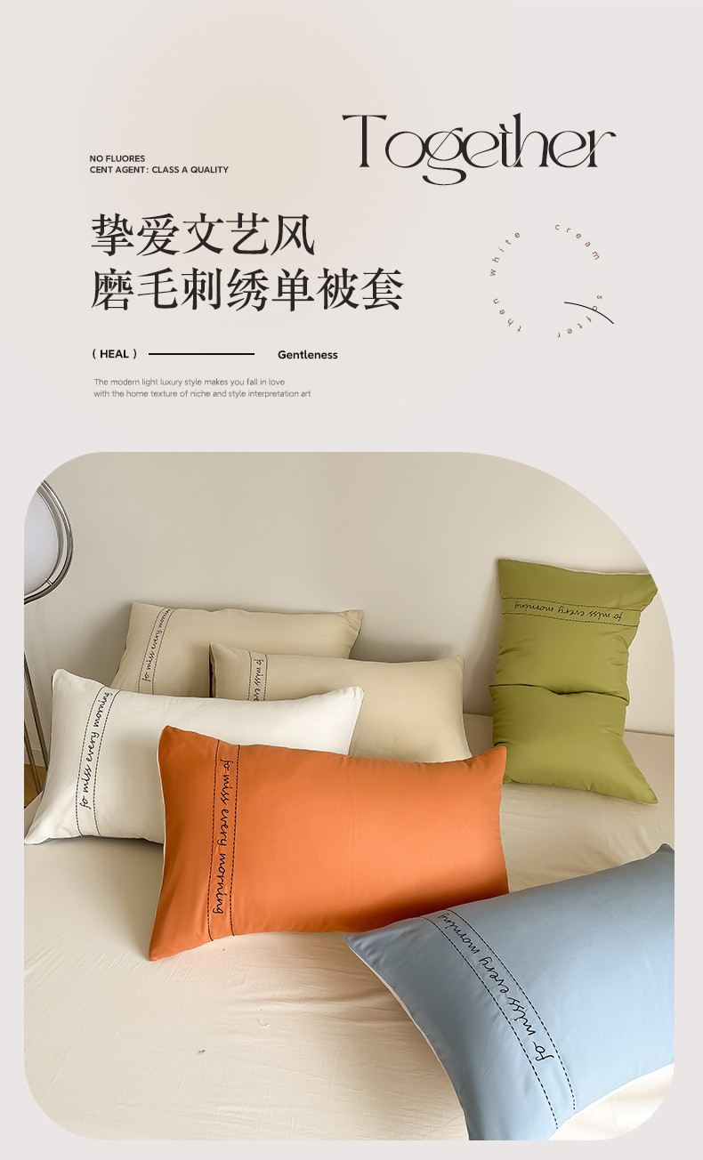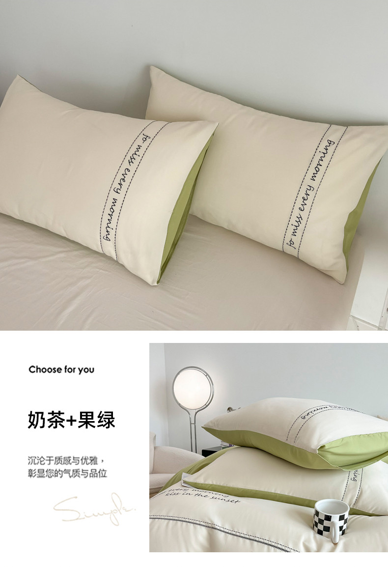 商品名称:尤米 2023新款磨毛刺绣纯色双拼卡洛森系列--单枕套 奶茶+果绿