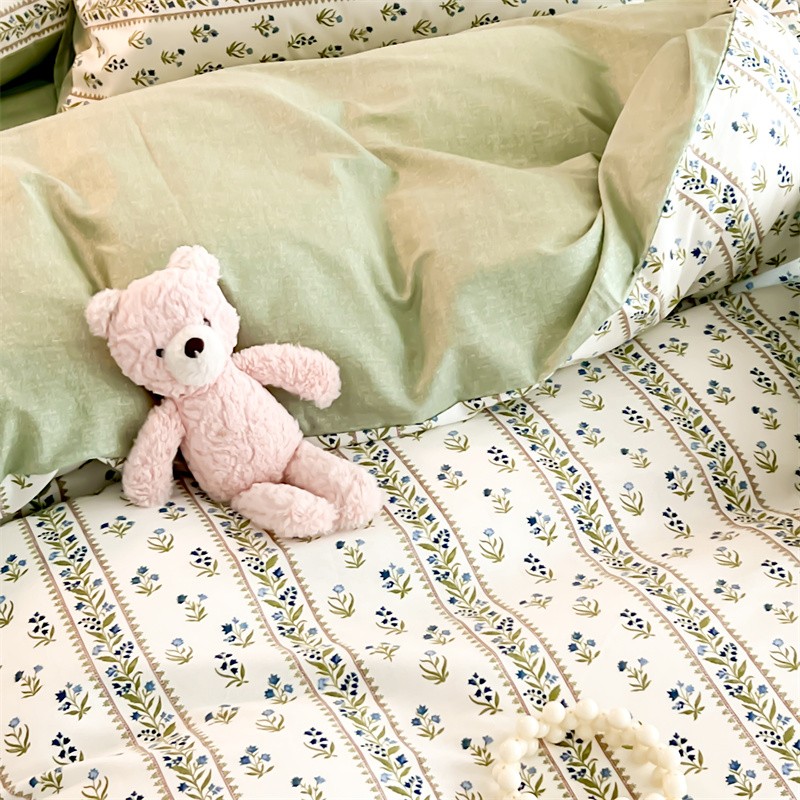 顾里家纺 2023新款40支13372全棉印花四件套 浪漫蓝樱