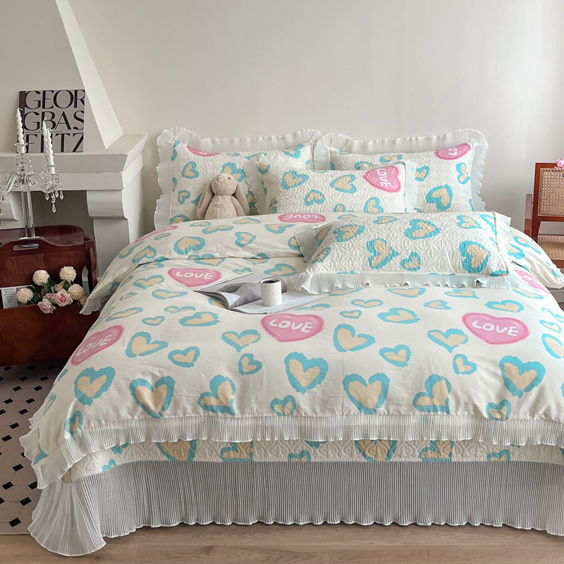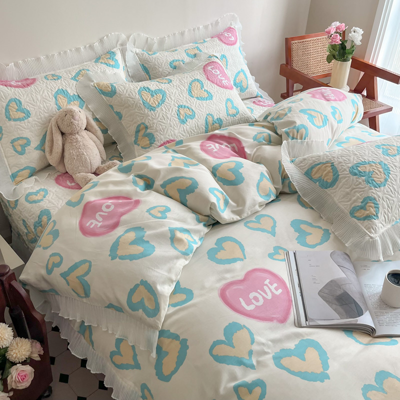 添越 2024小清新韩版蕾丝花边纯棉夹棉床盖三件套全棉天使之心