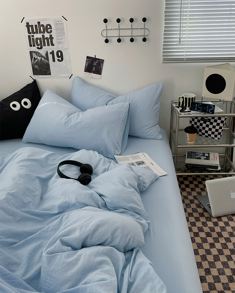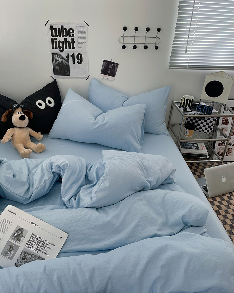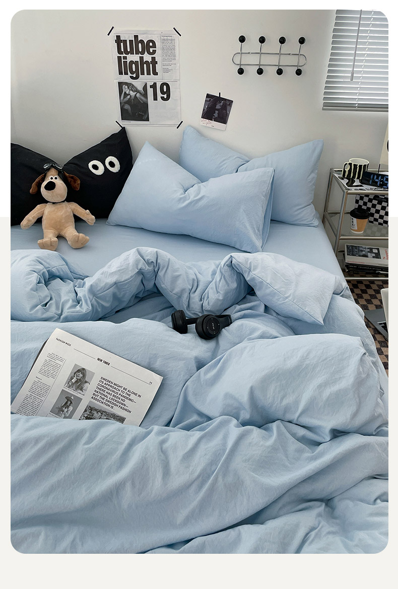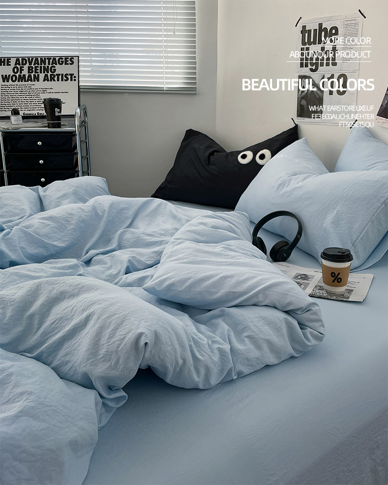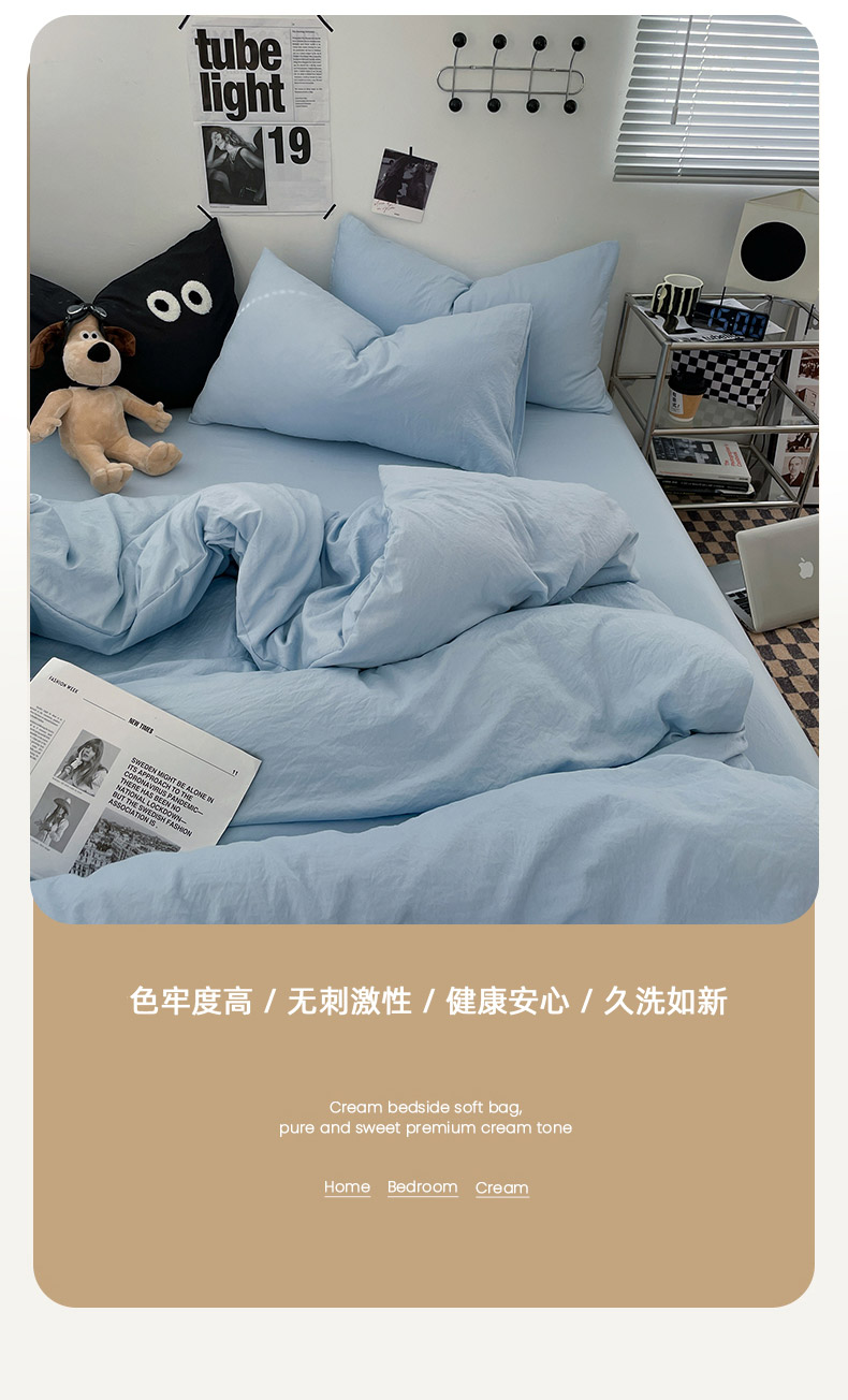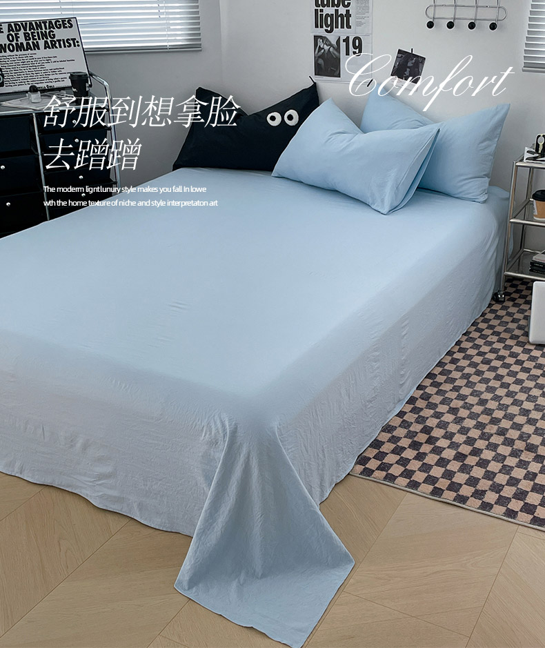(总)贝拉梦家纺 2024新款褶皱炒鸡糯纯色水洗棉学生床三件套,风信紫,浩瀚蓝,焦糖,可可蛋奶,马卡龙蓝,莫奈灰,桃夭,庭芜绿,香草冰激凌