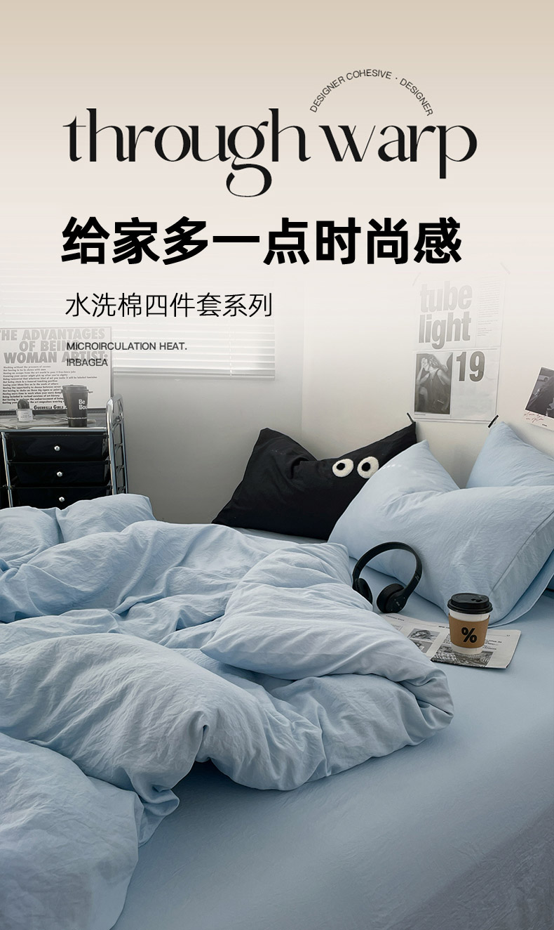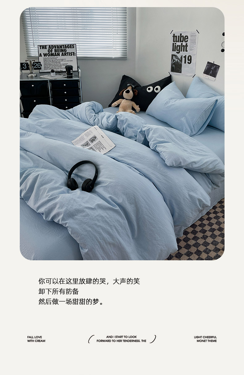 商品名称:贝拉梦 2023新款ins风超柔亲肤磨毛褶皱水洗棉四件套 ins晴蓝