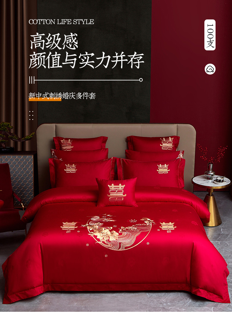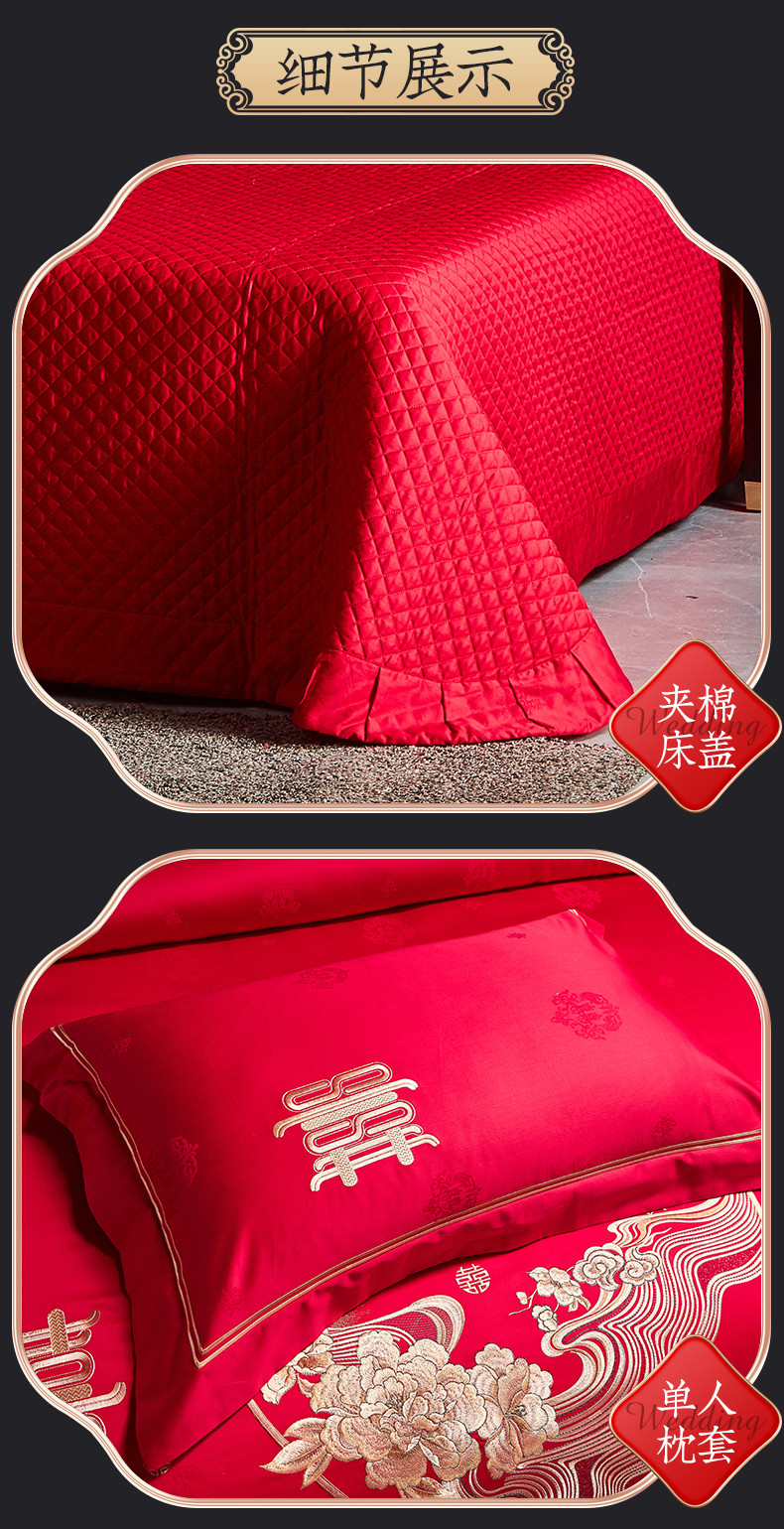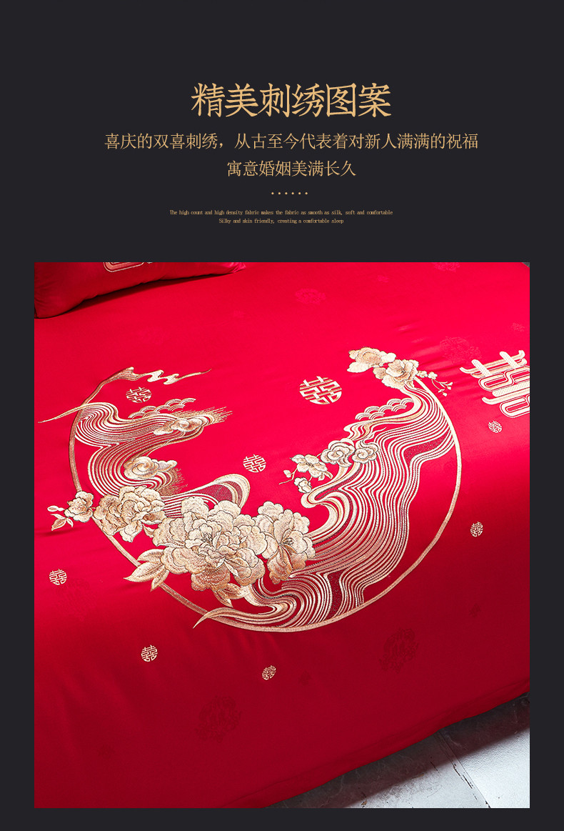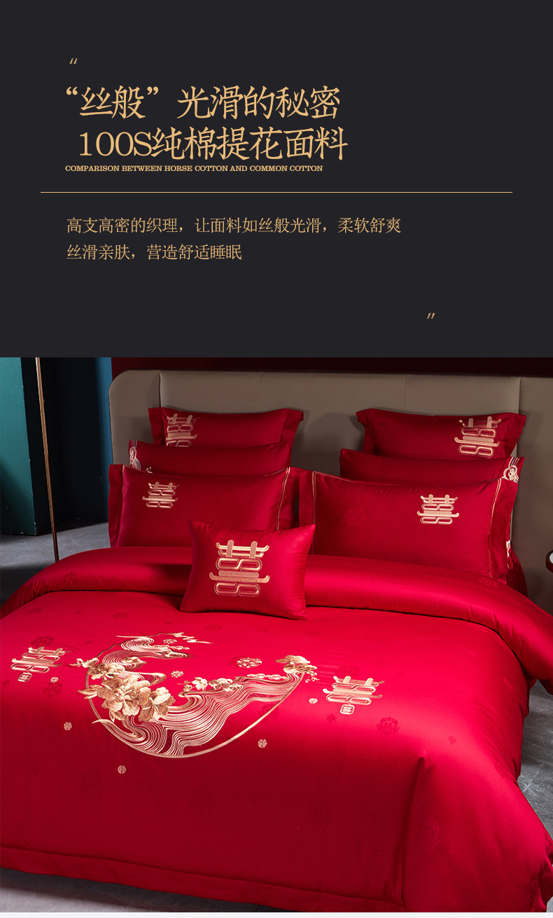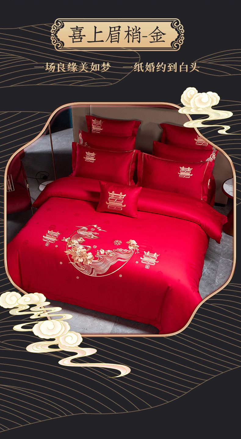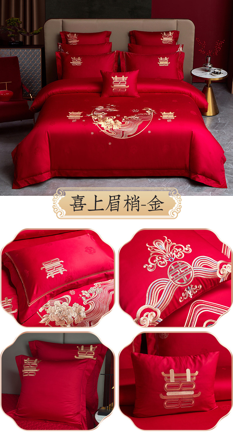 当前位置: 91家纺网 > 商品网购 > 床品套件 > 四件套 > 提花四件套 > 2024新款高支高密纯棉提花长绒棉大红婚庆四件套多件套 喜上眉梢-金