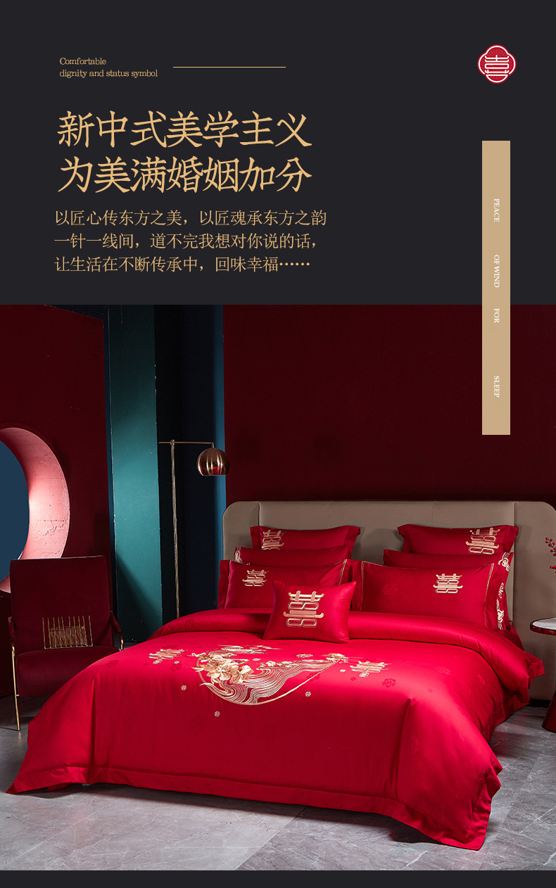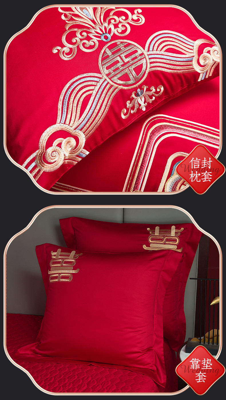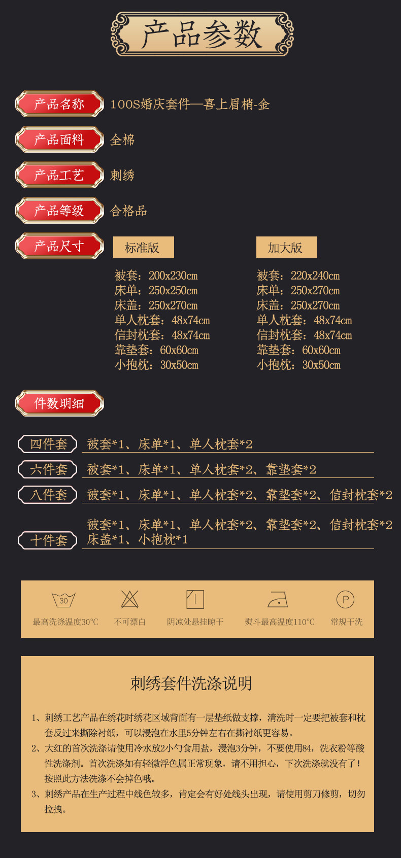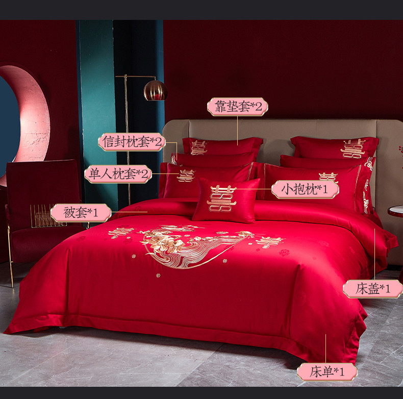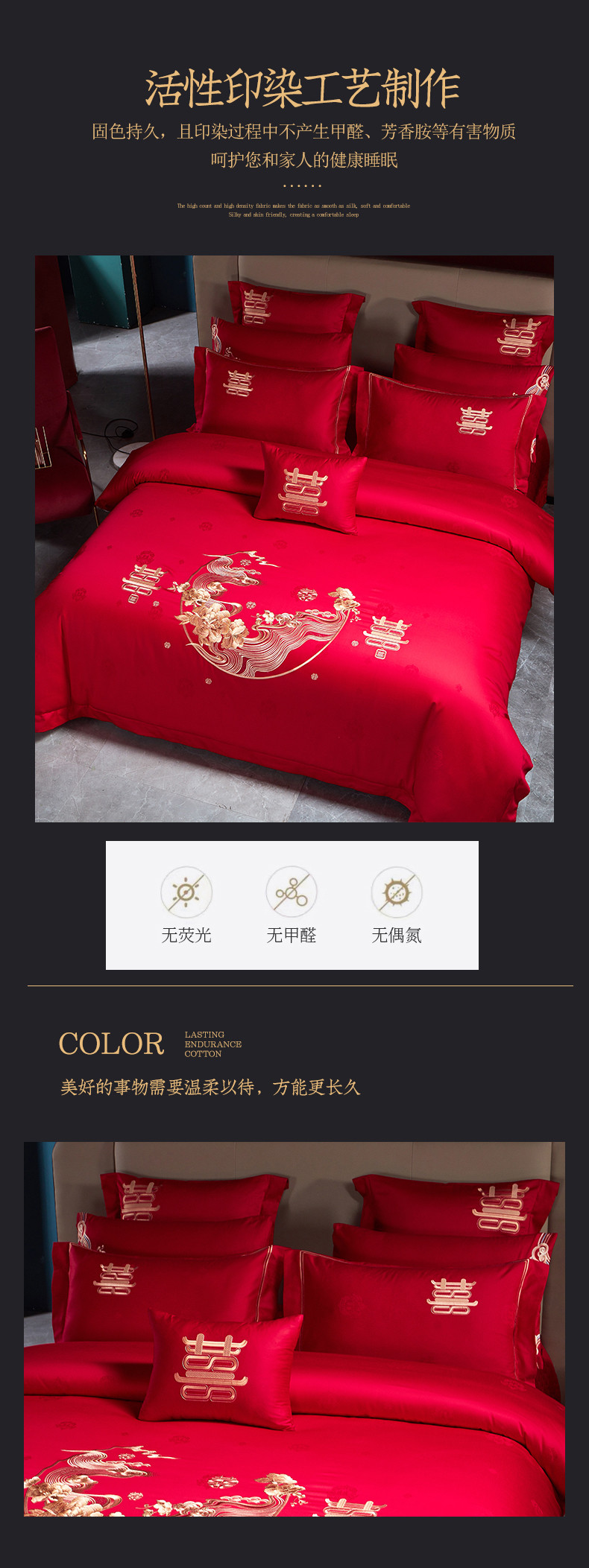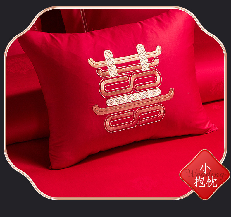 当前位置: 91家纺网 > 商品网购 > 床品套件 > 四件套 > 提花四件套 > 2024新款高支高密纯棉提花长绒棉大红婚庆四件套多件套 喜上眉梢-金