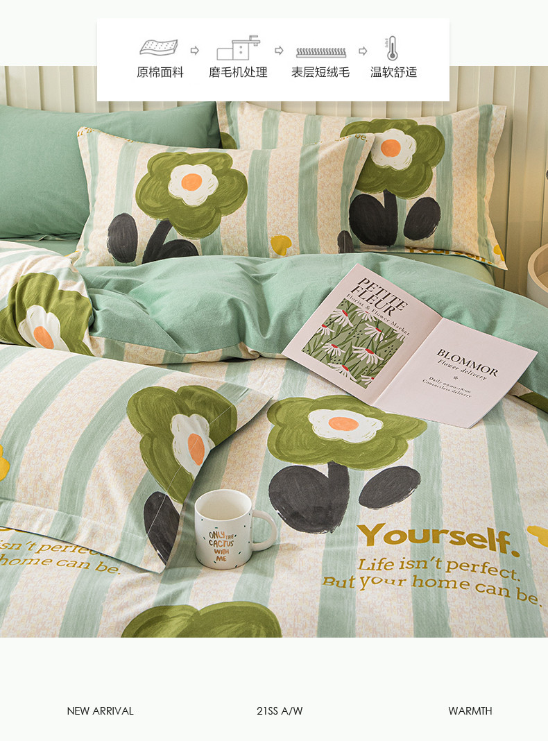 卡巴伦家纺 2023新款磨毛小清新印花系列四件套 花花物语
