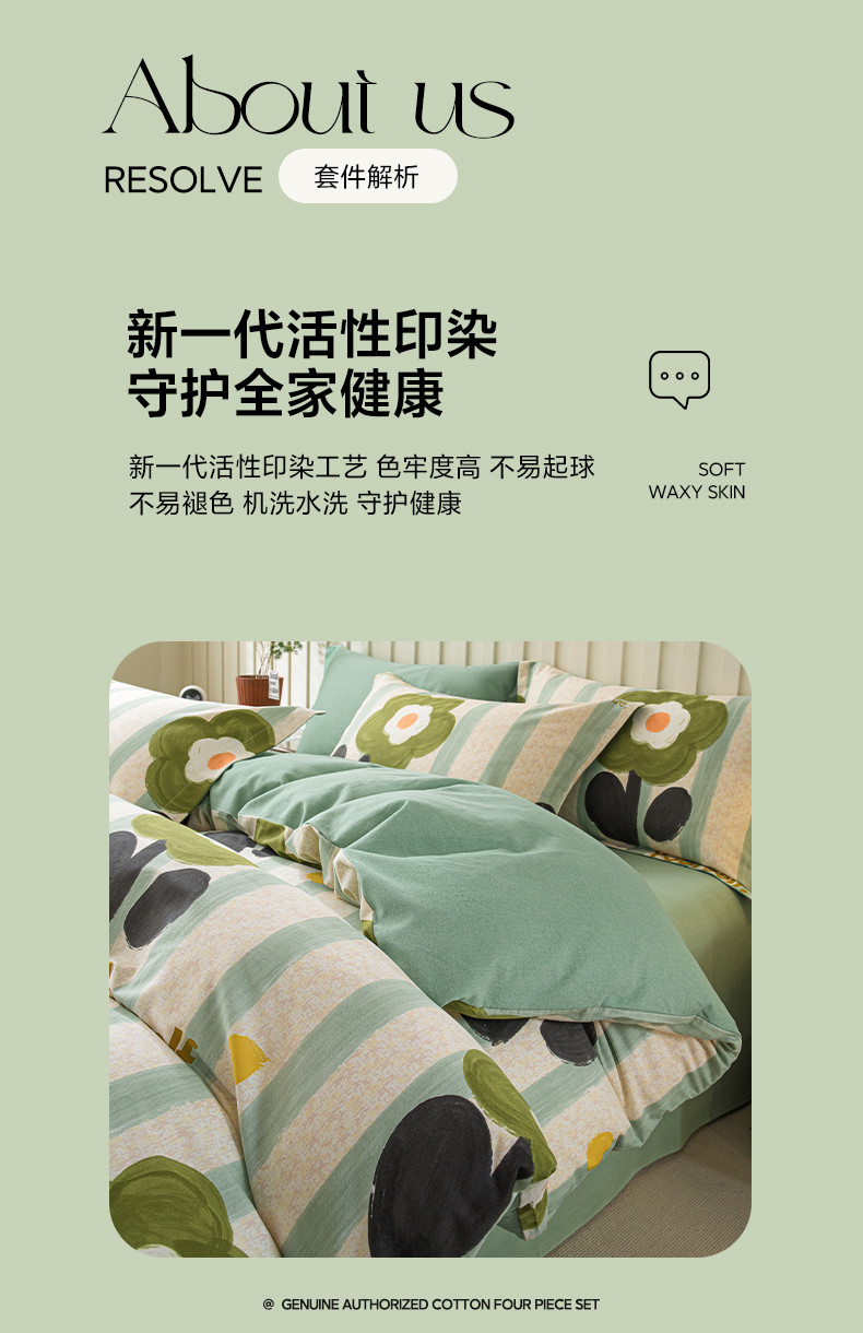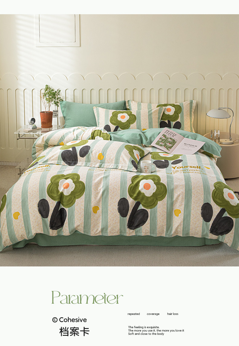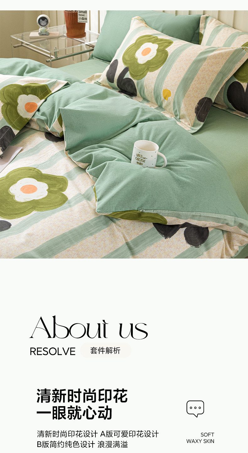 商品名称:卡巴伦家纺 2023新款磨毛小清新印花系列四件套 花花物语