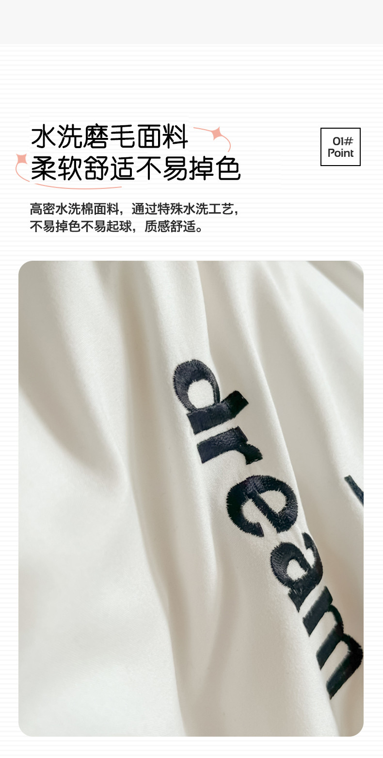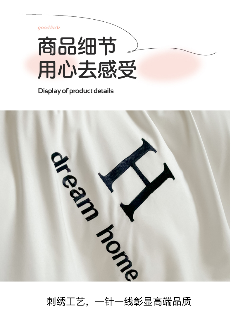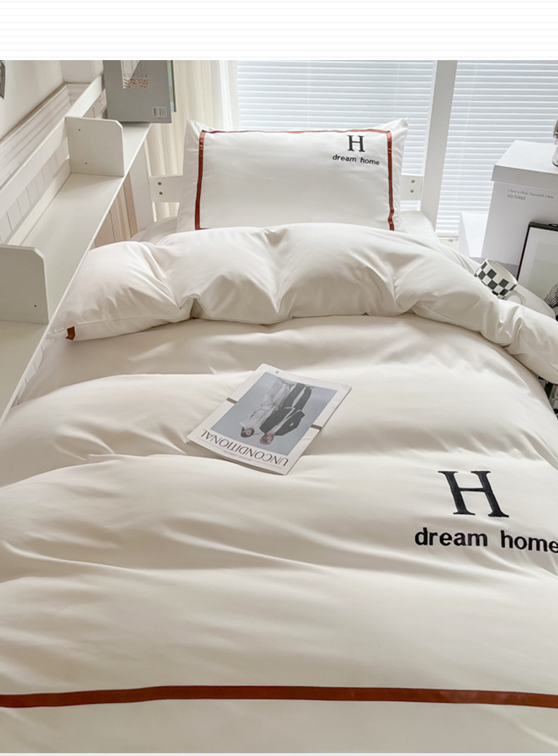 商品名称:千希家纺 2023新款水洗棉磨毛刺绣学生季上下铺宿舍三件套-大H款 大H-米白