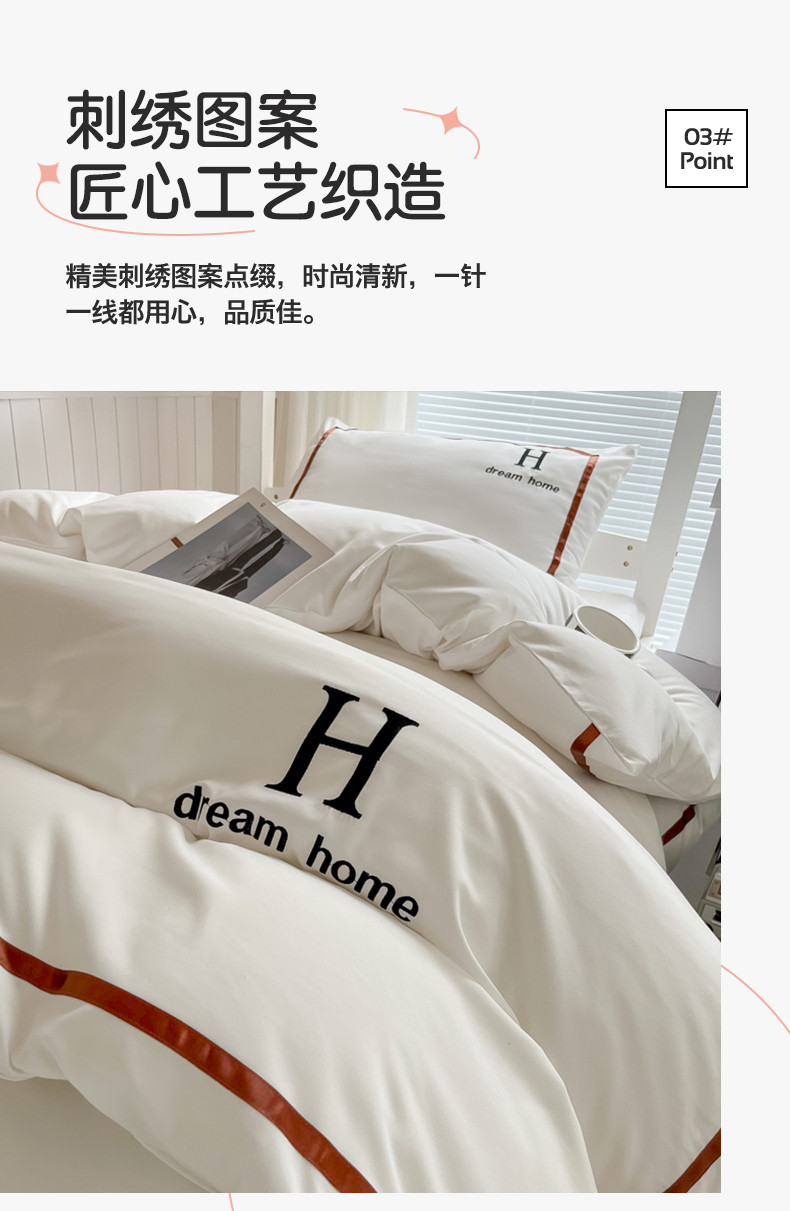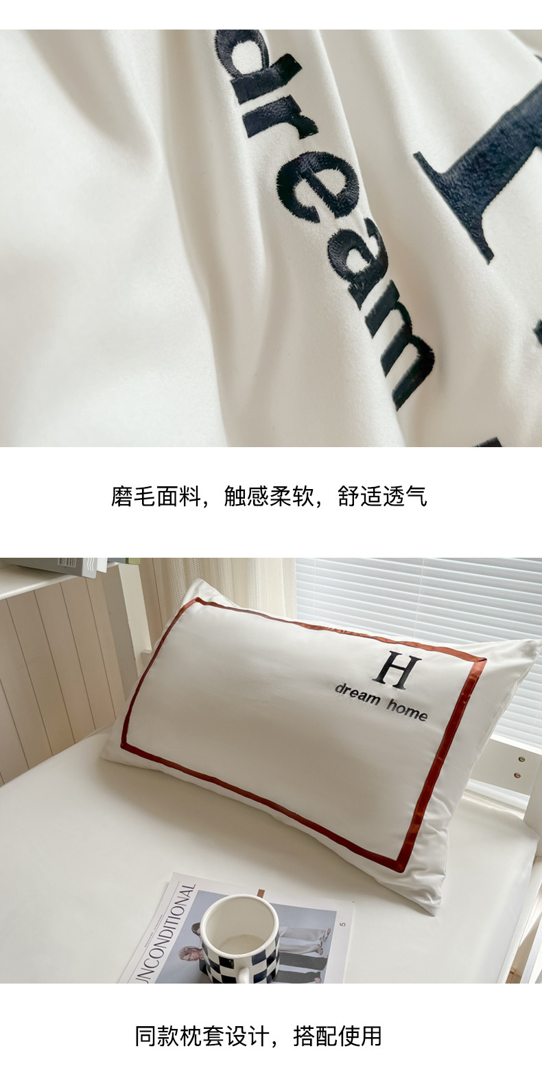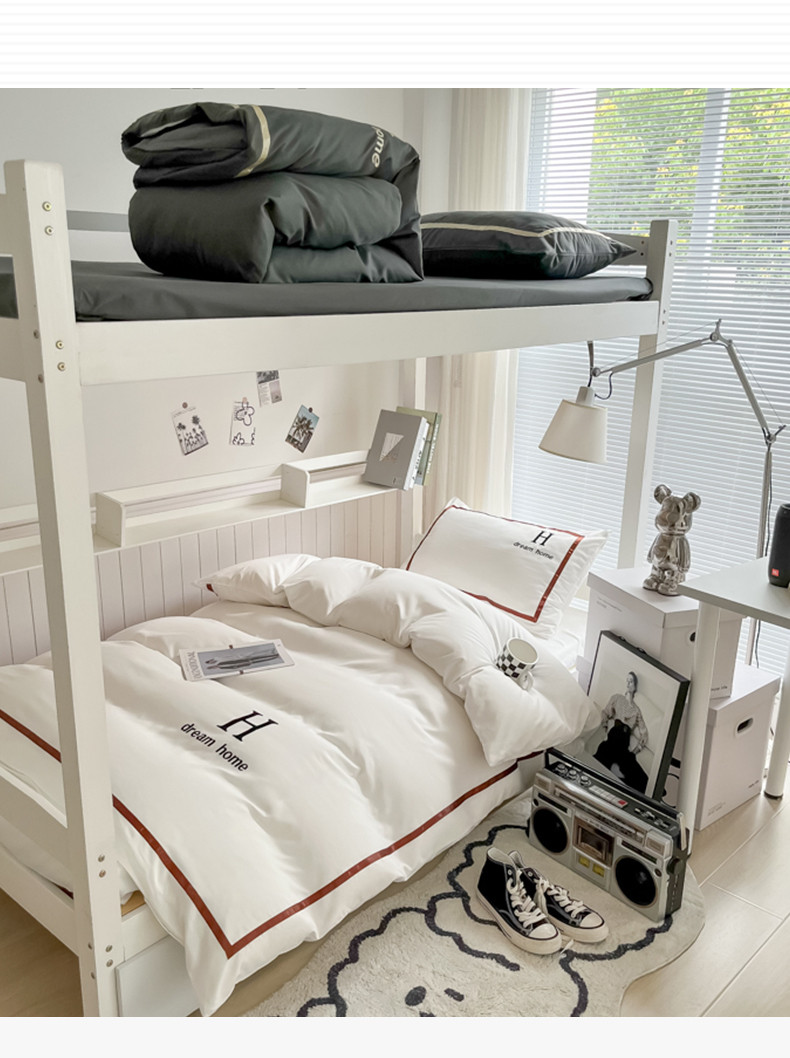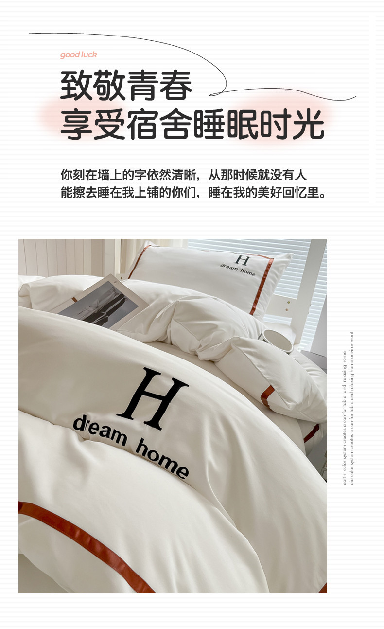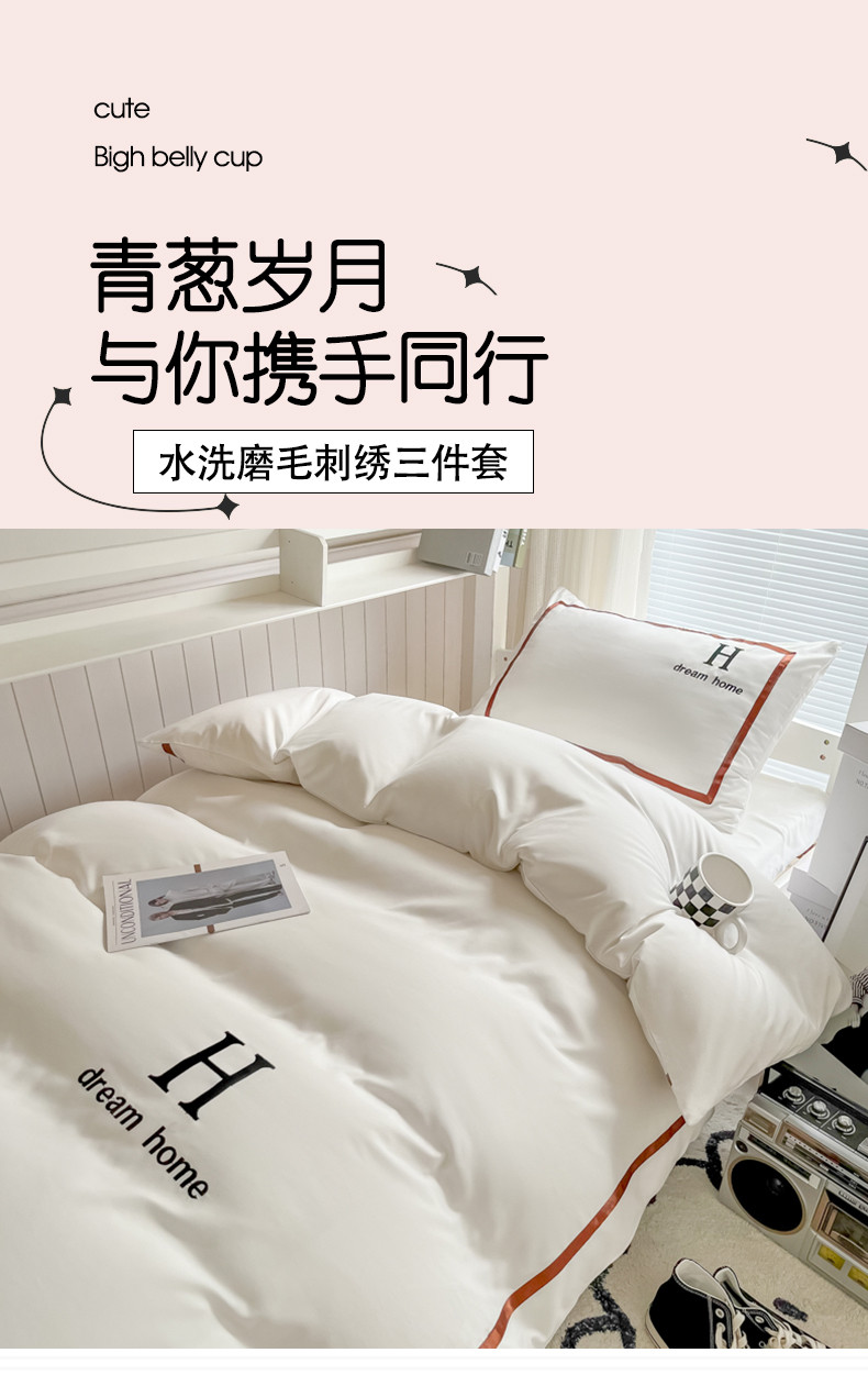 千希家纺 2023新款水洗棉磨毛刺绣学生季上下铺宿舍三件套-大H款 大H-米白