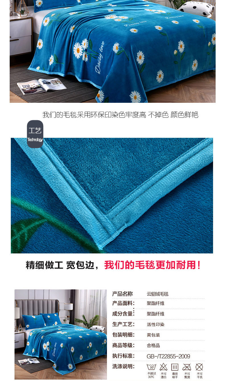 当前位置: 91家纺网 > 商品网购 > 毛毯休闲毯绒毯 > 法莱绒毯 > 赋雅 新款300克双面绒毯子超柔加厚云貂绒法莱绒 雏菊 蓝