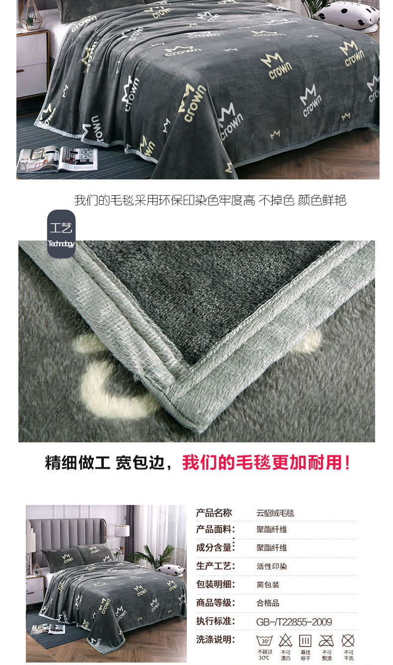 当前位置: 91家纺网 > 商品网购 > 毛毯休闲毯绒毯 > 法莱绒毯 > 赋雅 新款300克双面绒毯子超柔加厚云貂绒法莱绒 皇冠