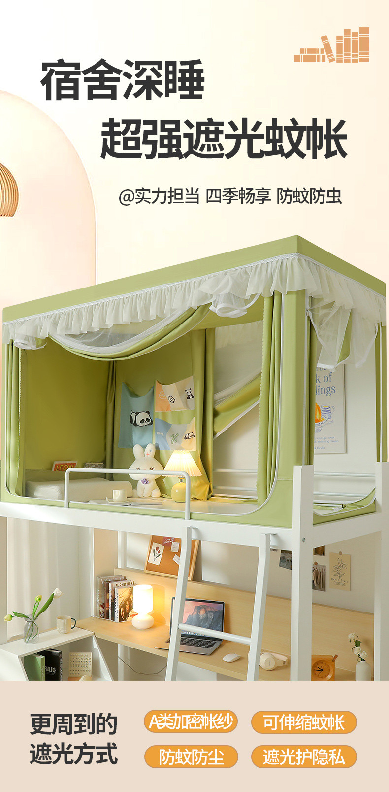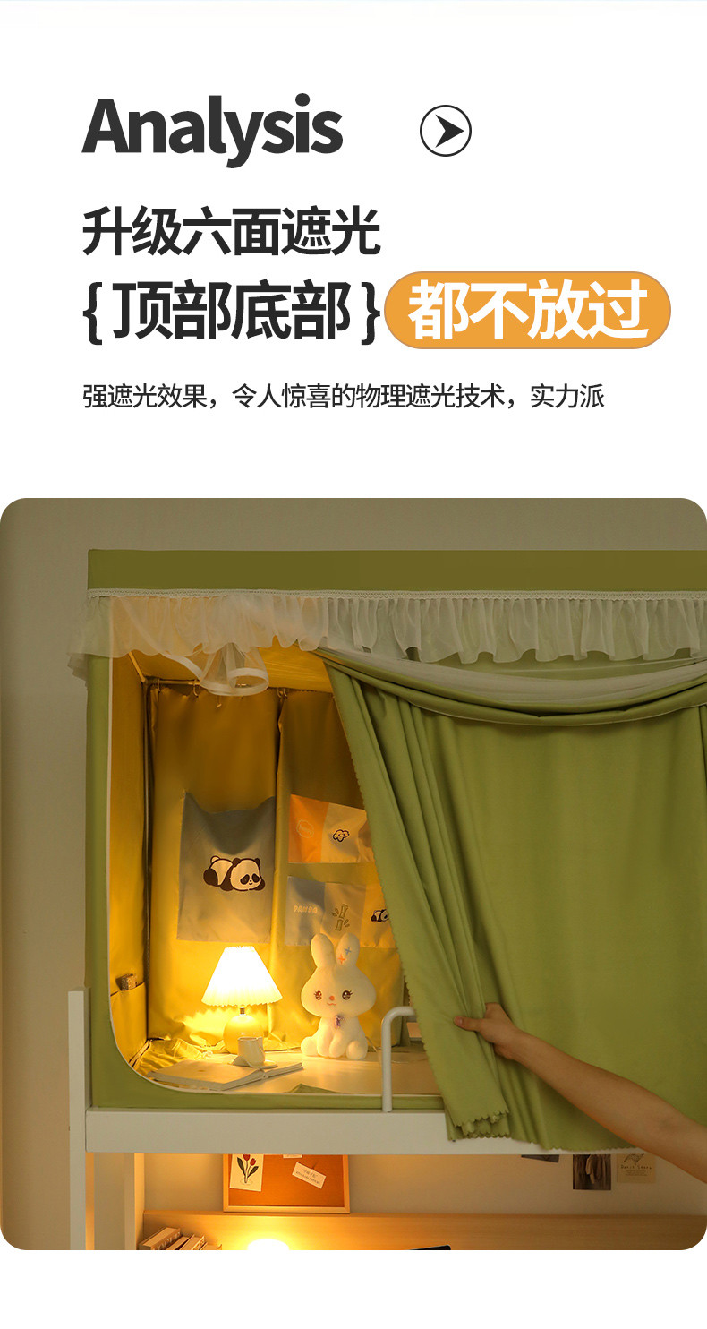 夏彩 88575加强遮光涂层窗帘学生上下铺拉链蚊帐 88557-抹茶绿