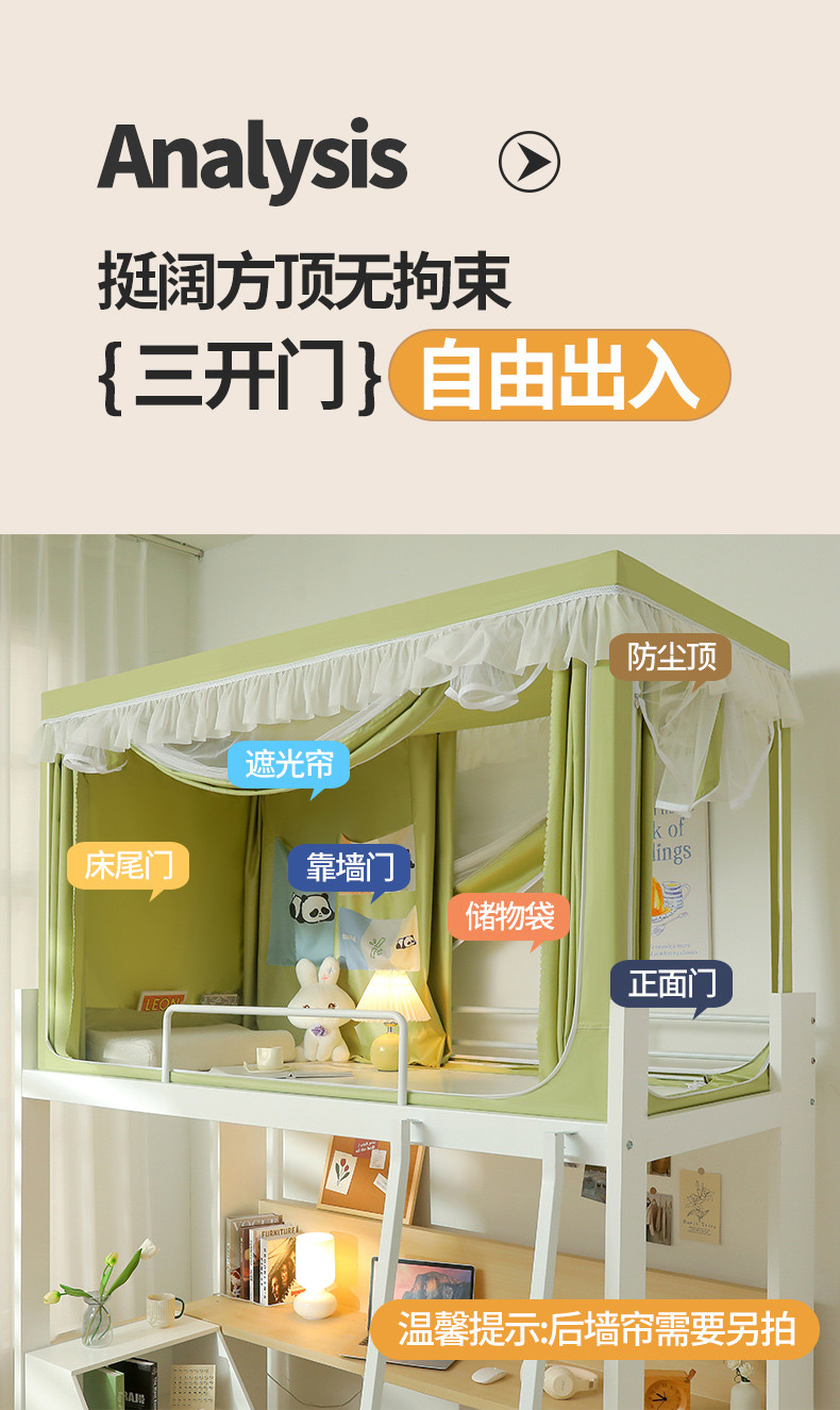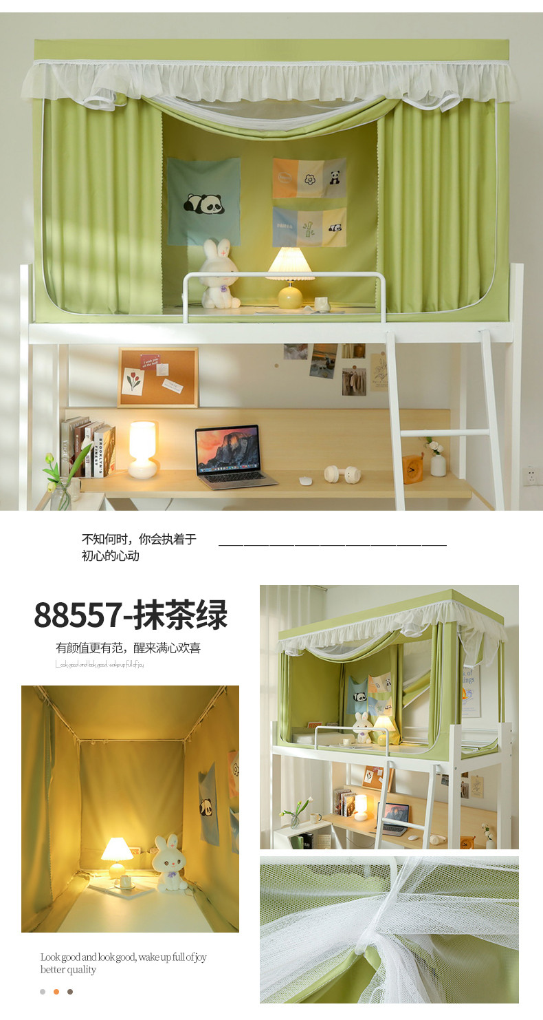 • 91家纺网 家纺一手货源 找家纺 夏彩 88575加强遮光涂层窗帘学生上下铺拉链蚊帐 88557-抹茶绿