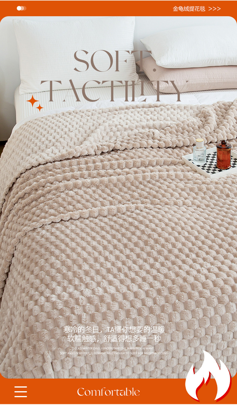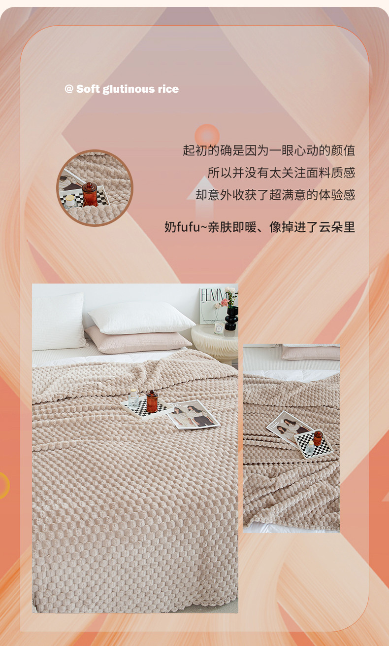 羋多 2023年新款菠萝格提花毯子法莱绒云貂绒贴布毛毯 金龟绒-米咖