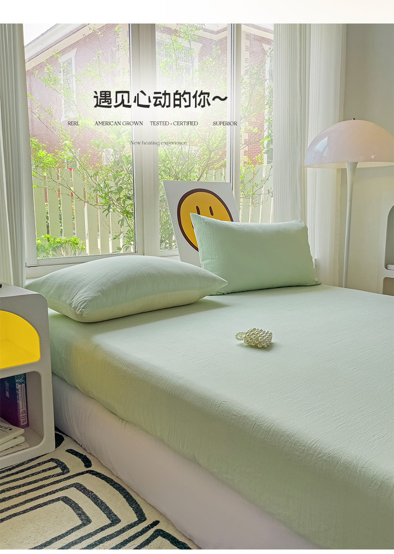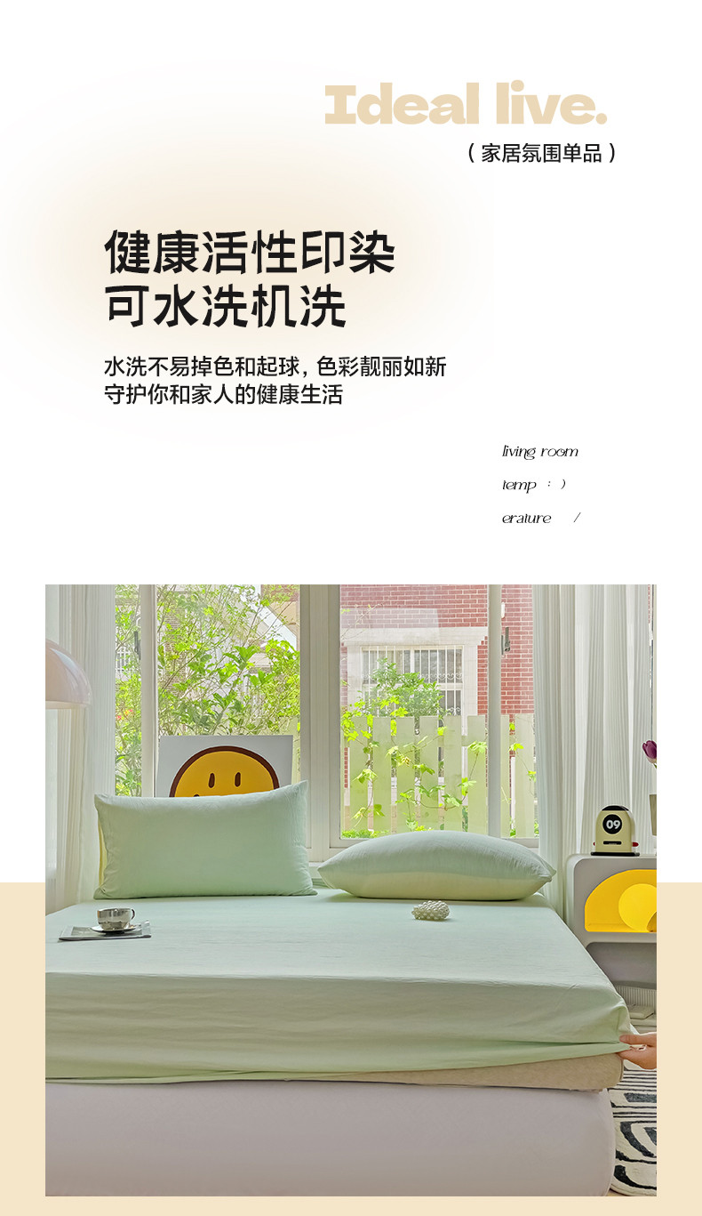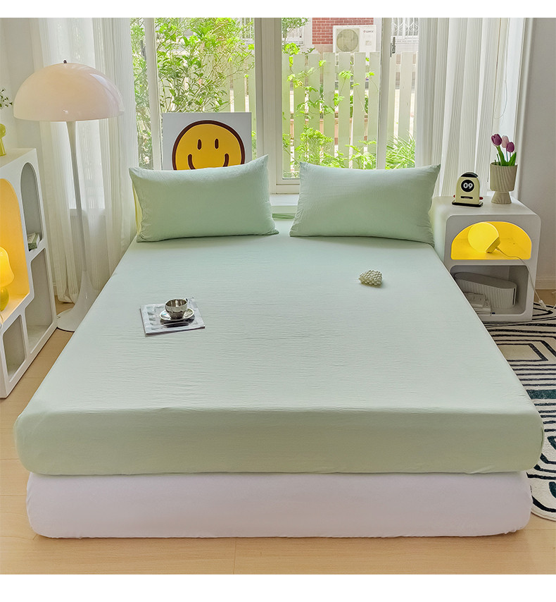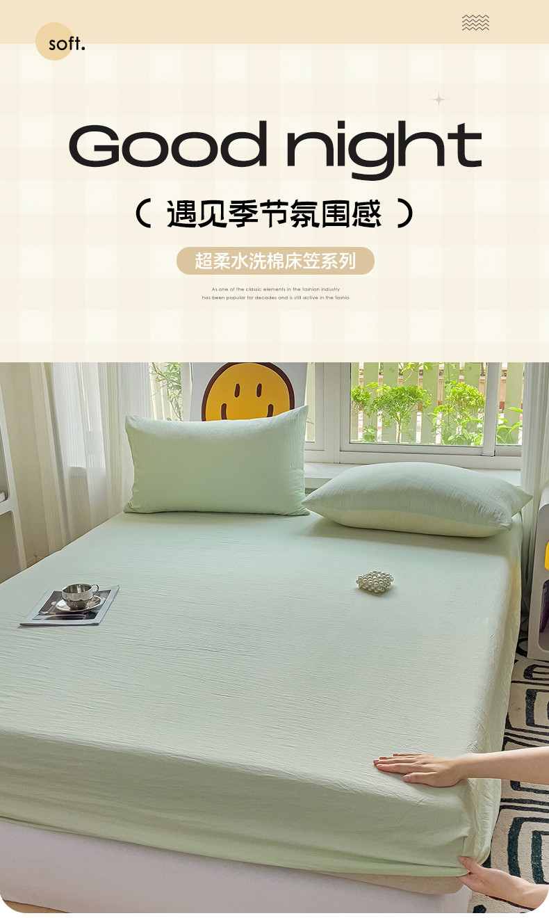 商品名称:水墨江南 2023新款超柔水洗棉单品床笠 藻绿
