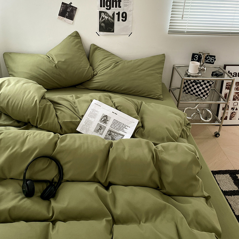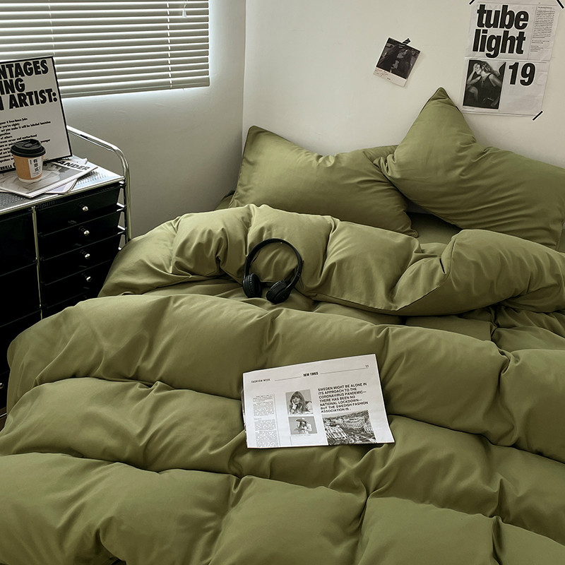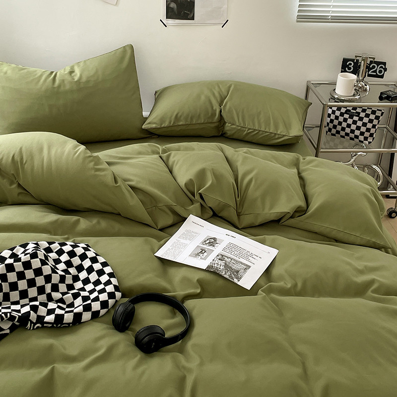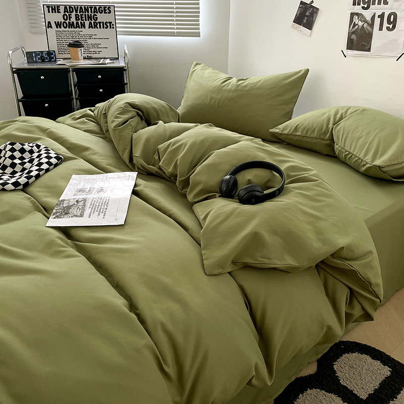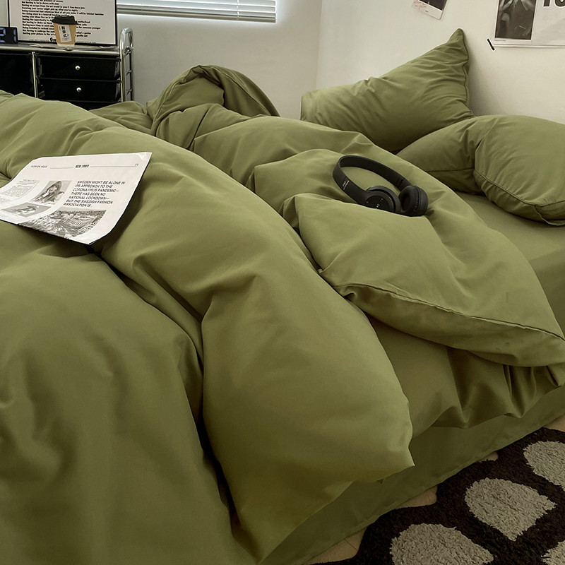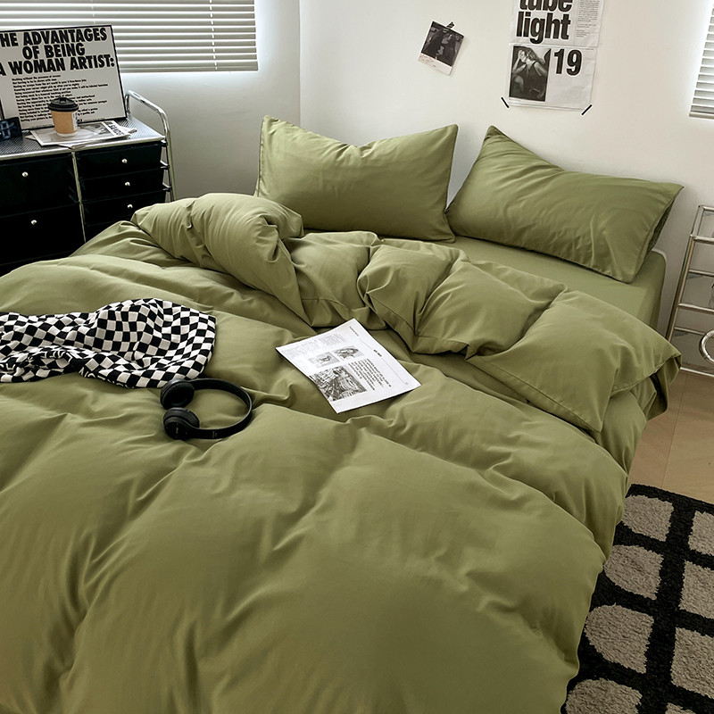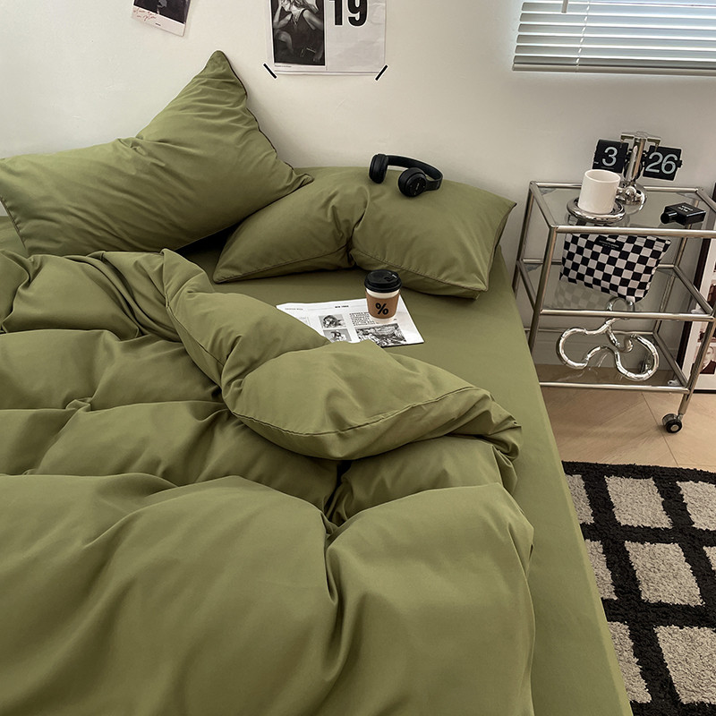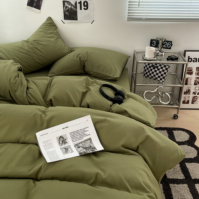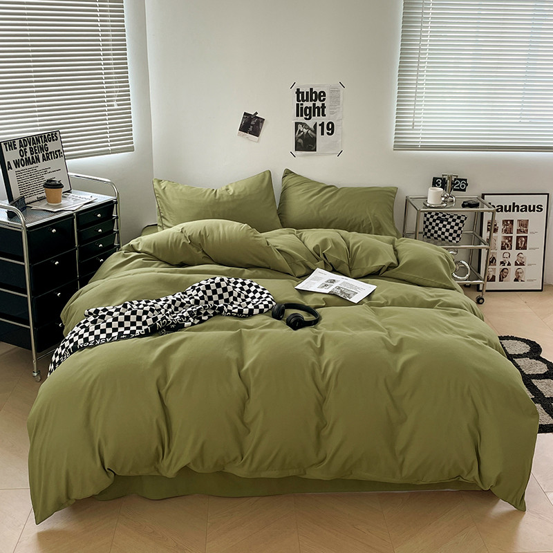蓝淋家纺 2023新款双拼水洗棉高级感亲肤四件套/三件套 军绿