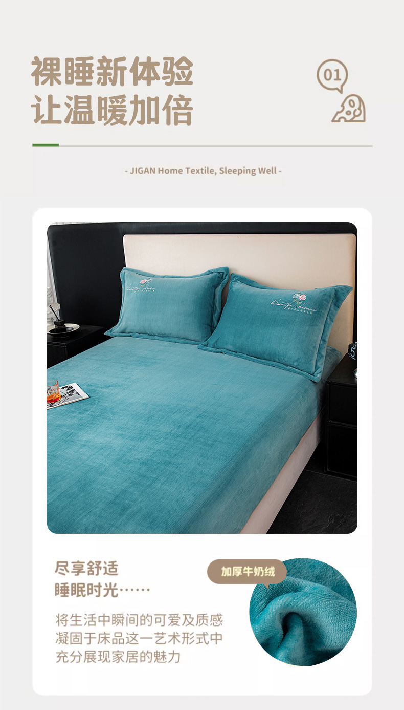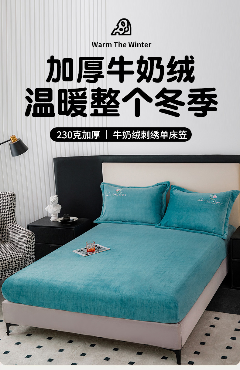 • 91家纺网 家纺一手货源 找家纺 新款230克高克重肌理纹绣花牛奶绒单床笠 肌理纹绣花-墨蓝