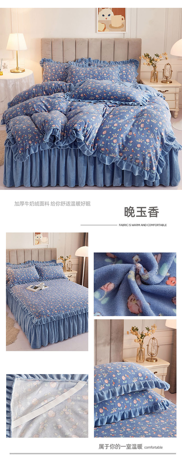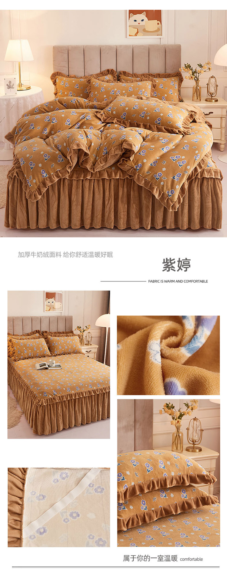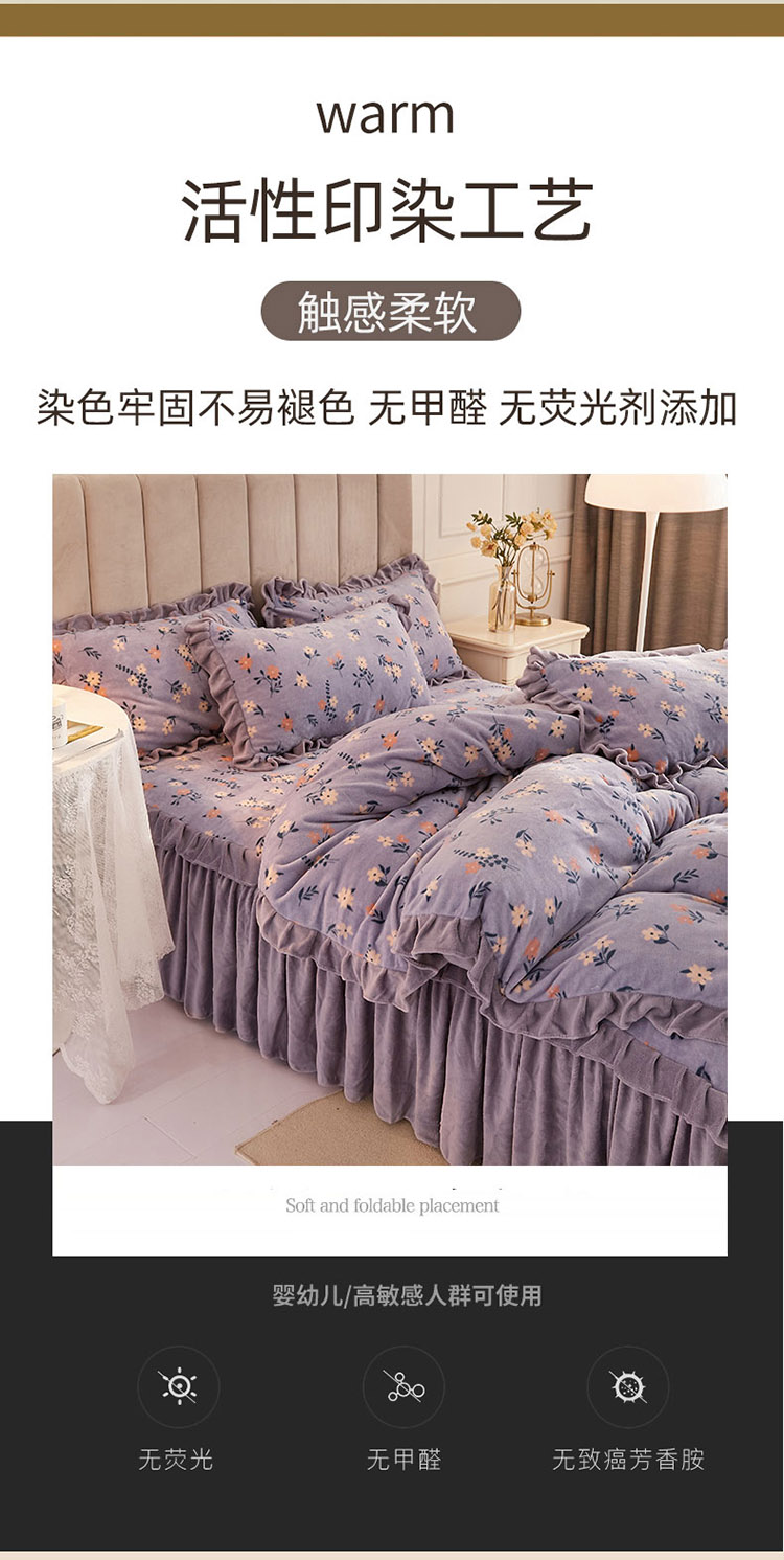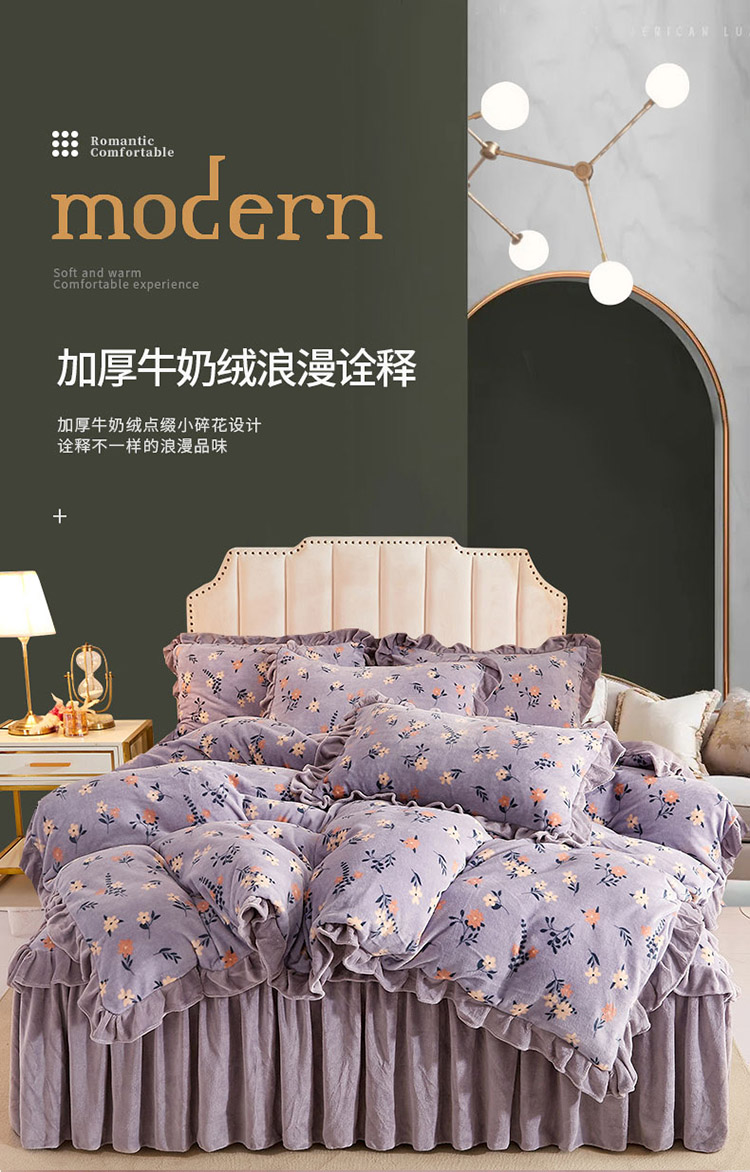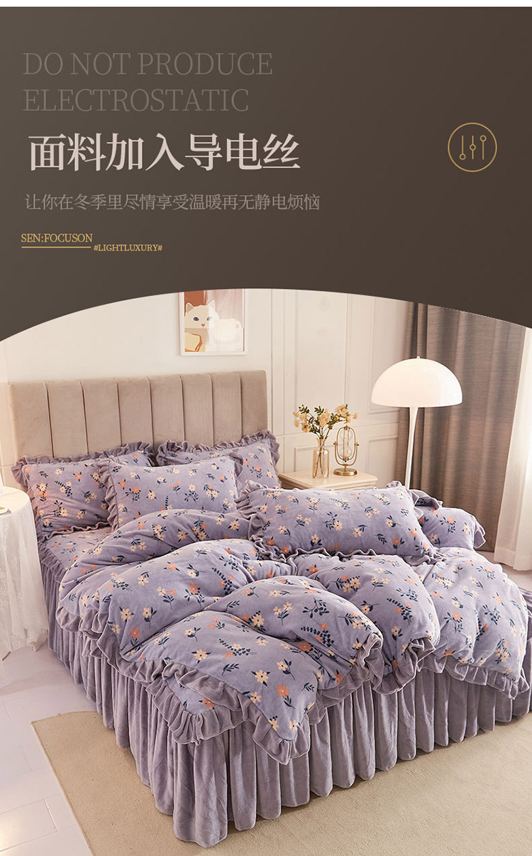 (总)恋尚 2023新款加厚防静电印花牛奶绒床裙四件套