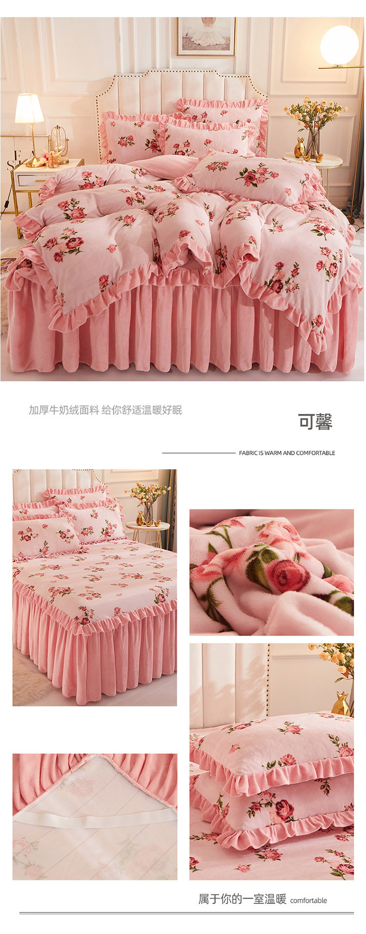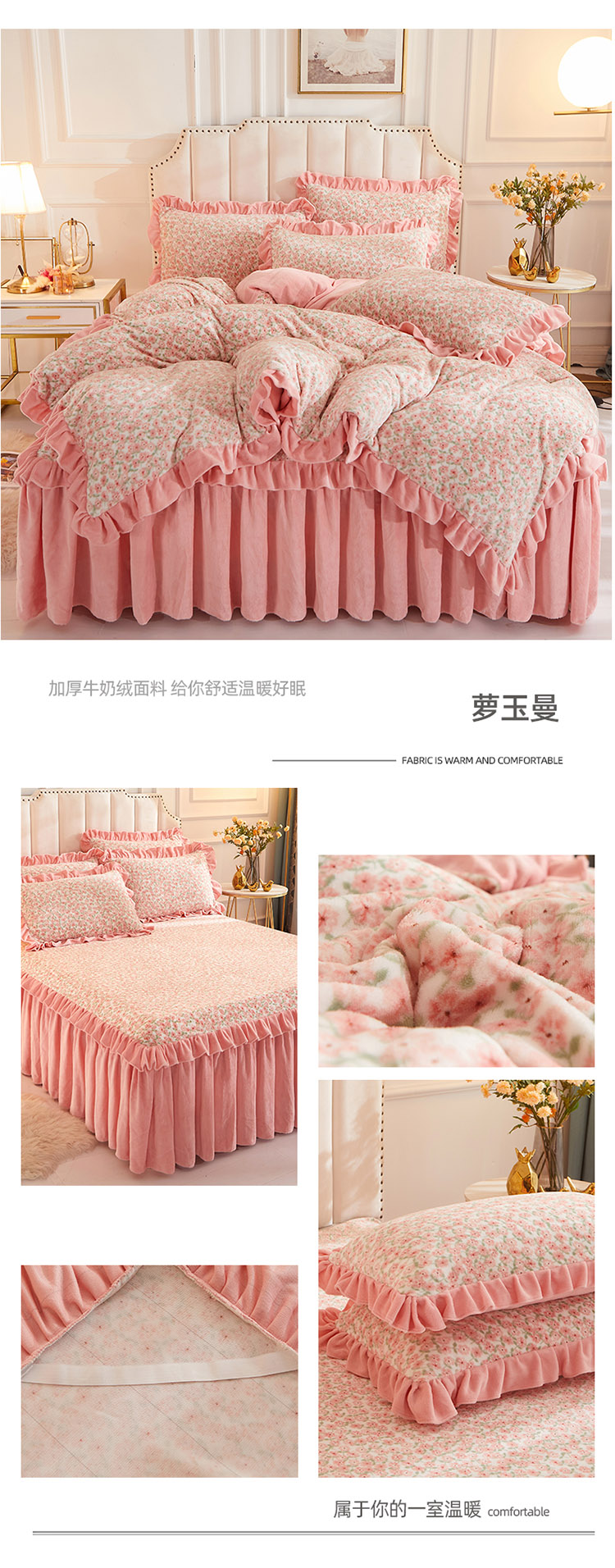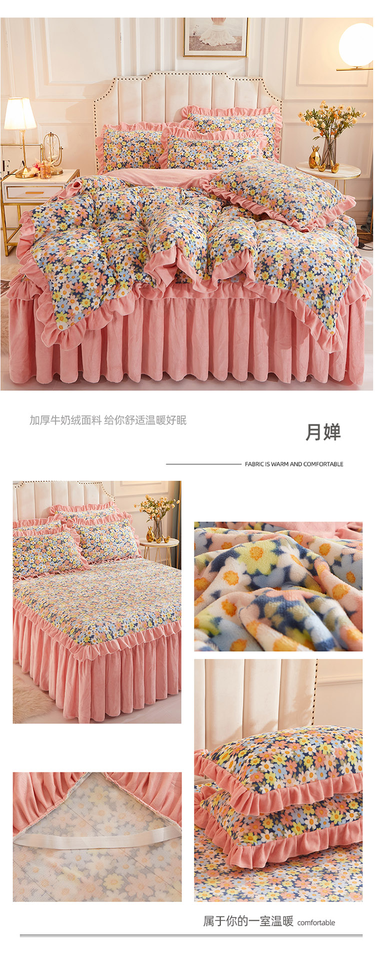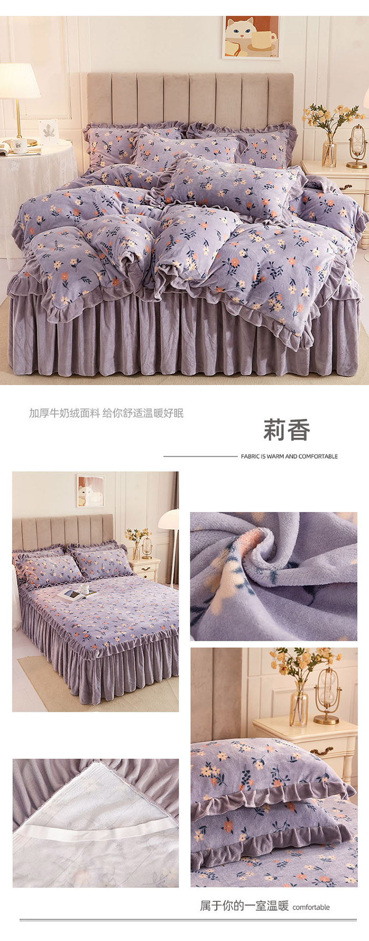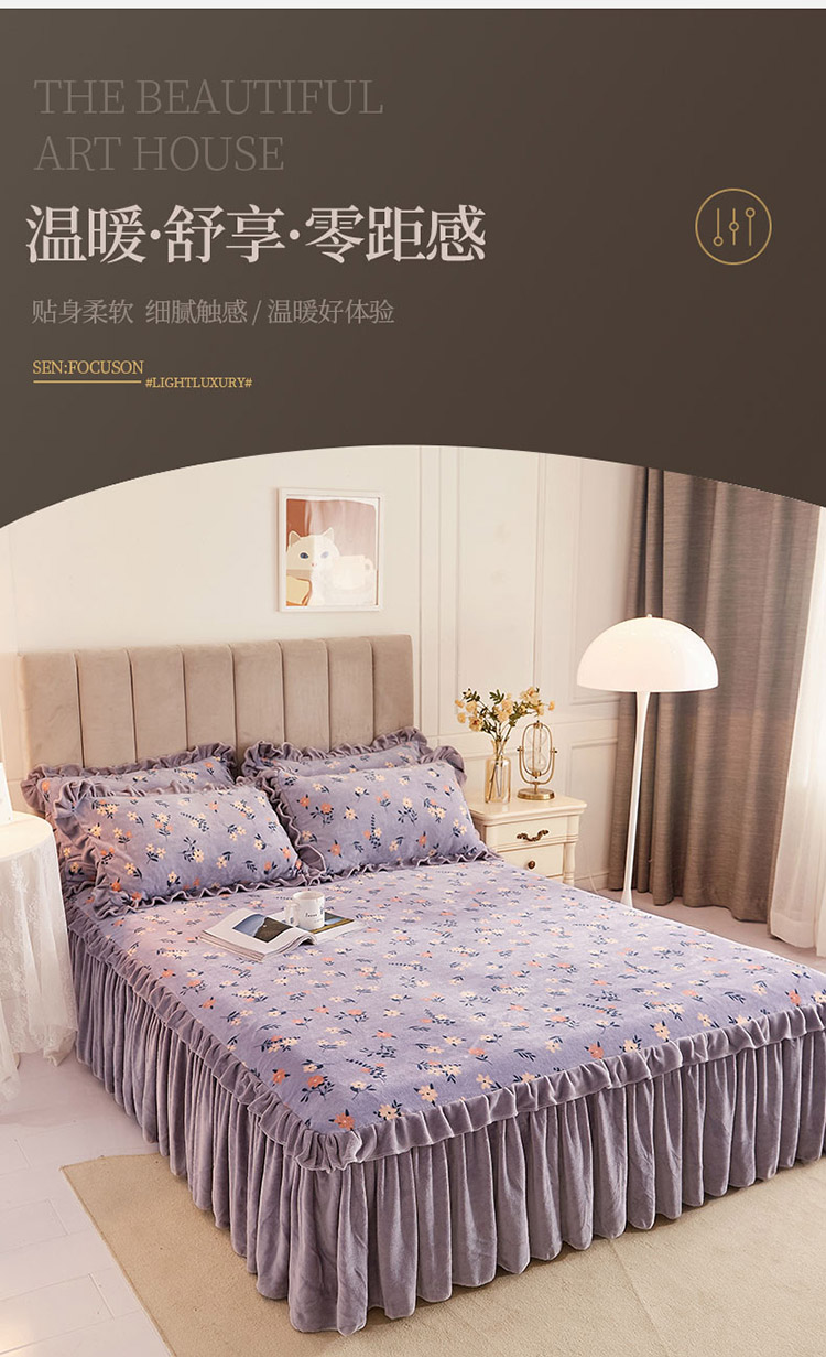 (总)恋尚 2025新款加厚牛奶绒保暖床笠式床裙单品床裙床裙单件-莫奈花园(床裙控价130起),莫奈花园-蜜桃粉,莫奈花园-奶油白,莫奈花园-清新粉,莫奈花园-香芋紫,莫奈花园-椰蓉灰
