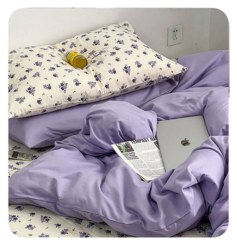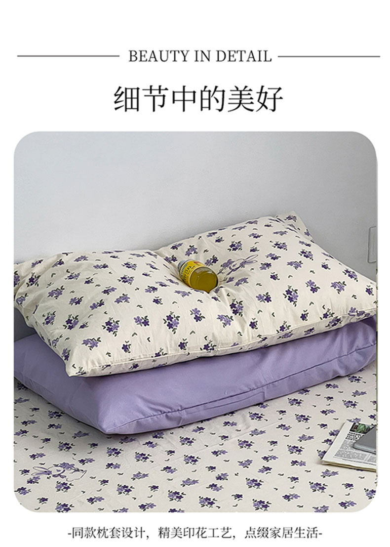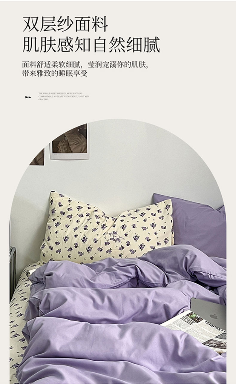 商品名称:梦嘉居 2023新款水洗棉双层纱亲肤舒适单床笠 浅紫+花园兔