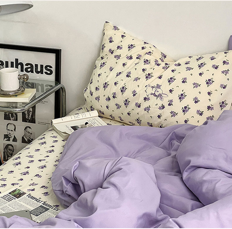梦嘉居 2023新款水洗棉双层纱亲肤舒适单床笠 浅紫+花园兔