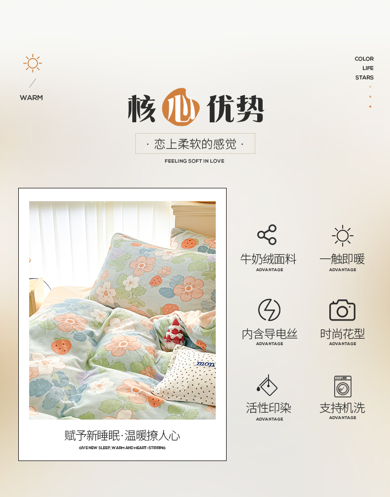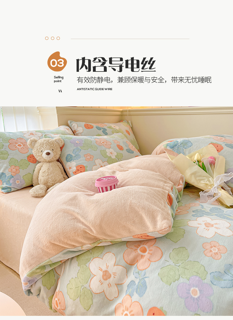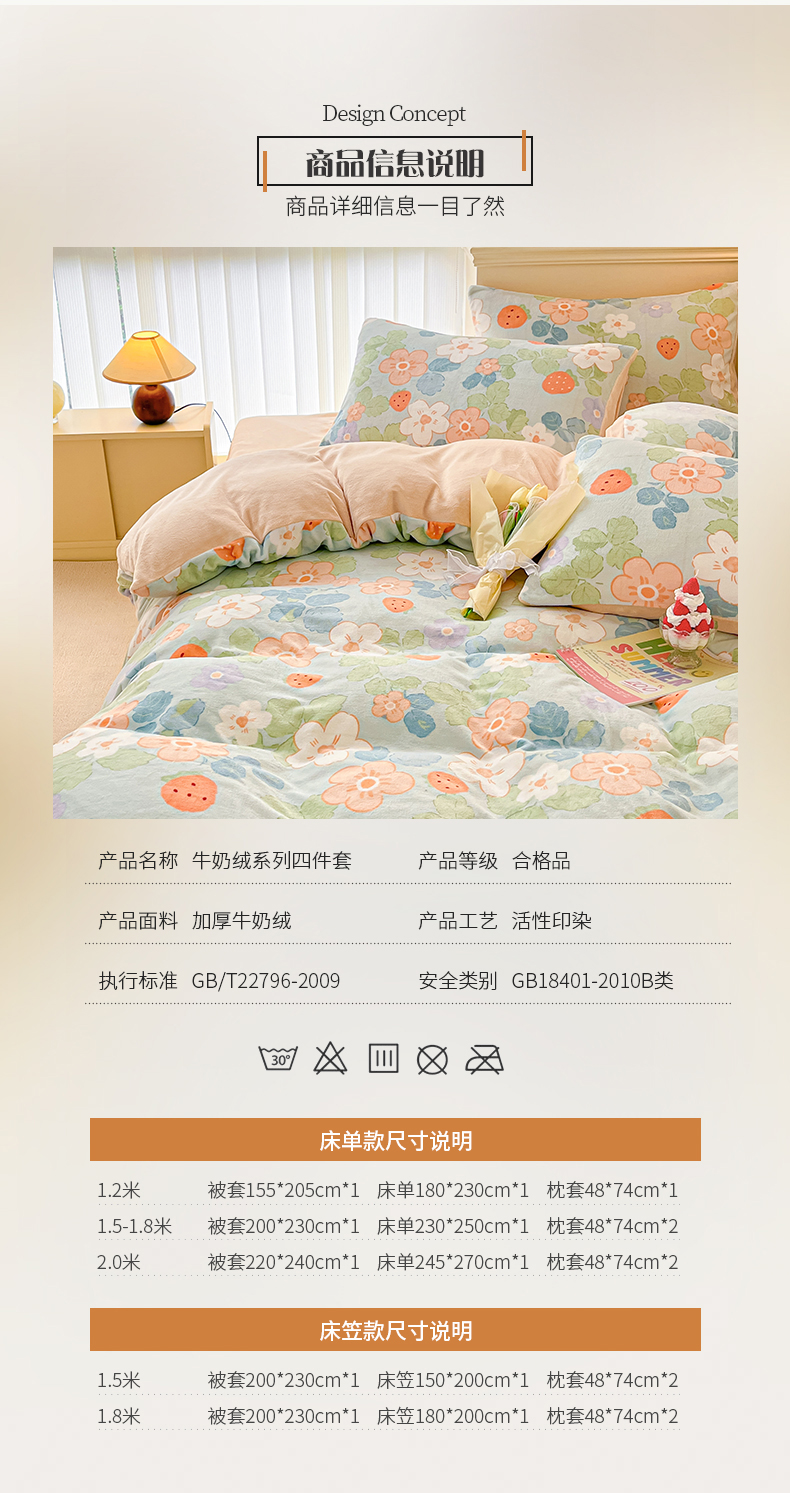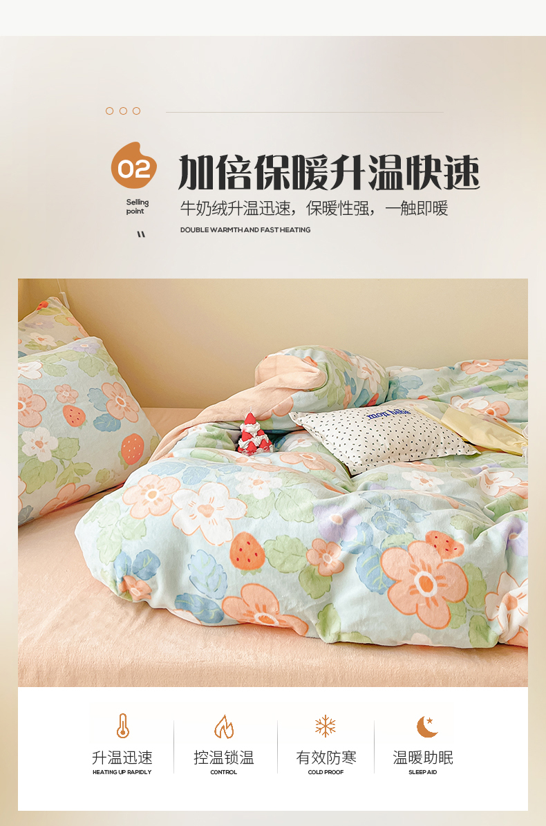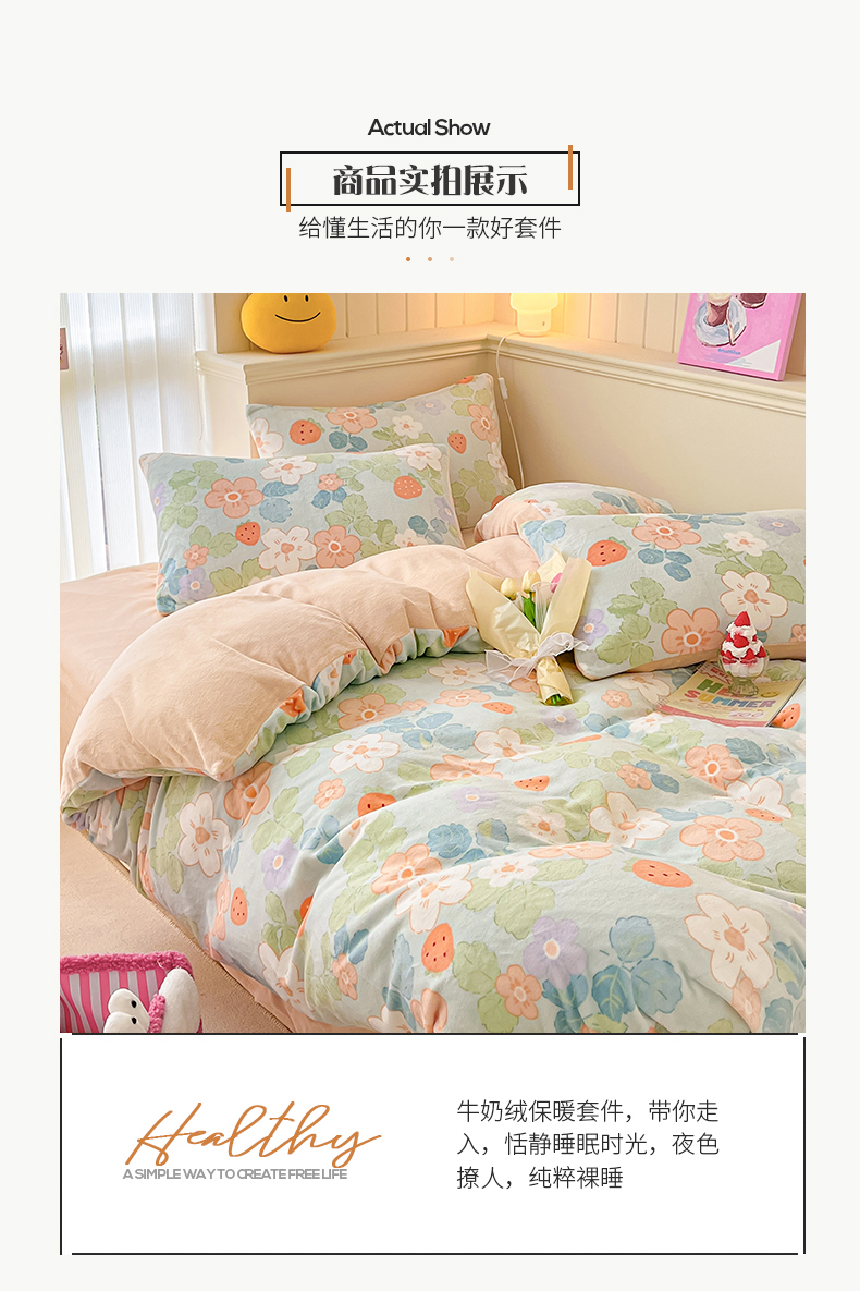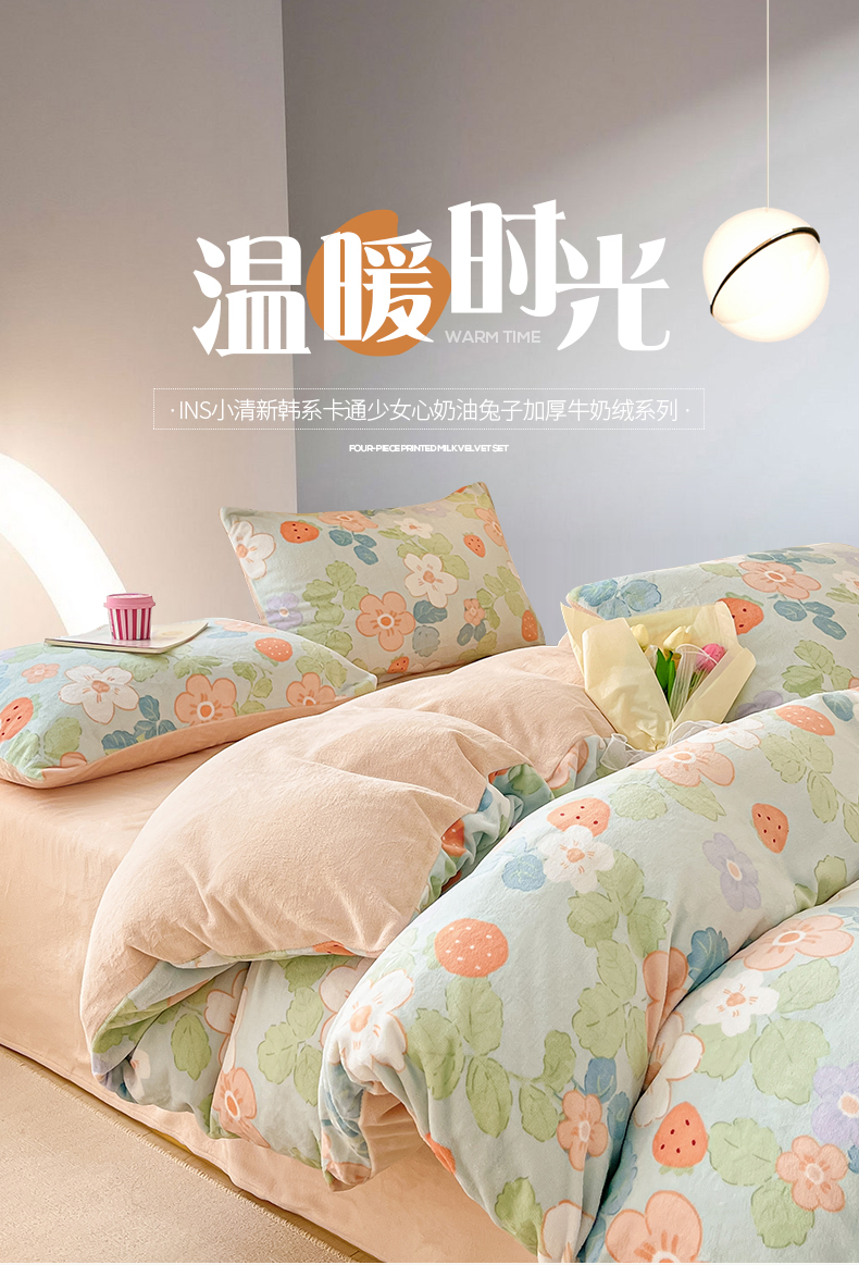 商品名称:桃子 2023新款ins小清新韩系卡通少女心奶油兔子加厚牛奶绒系列四件套-第一批 绒-觅香