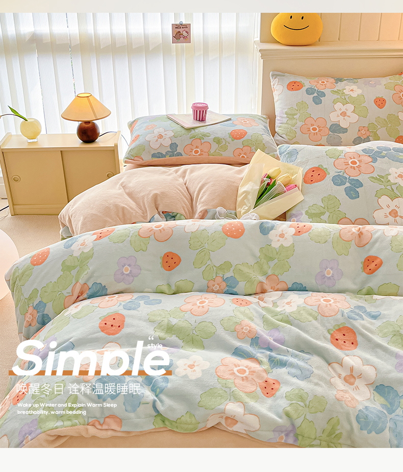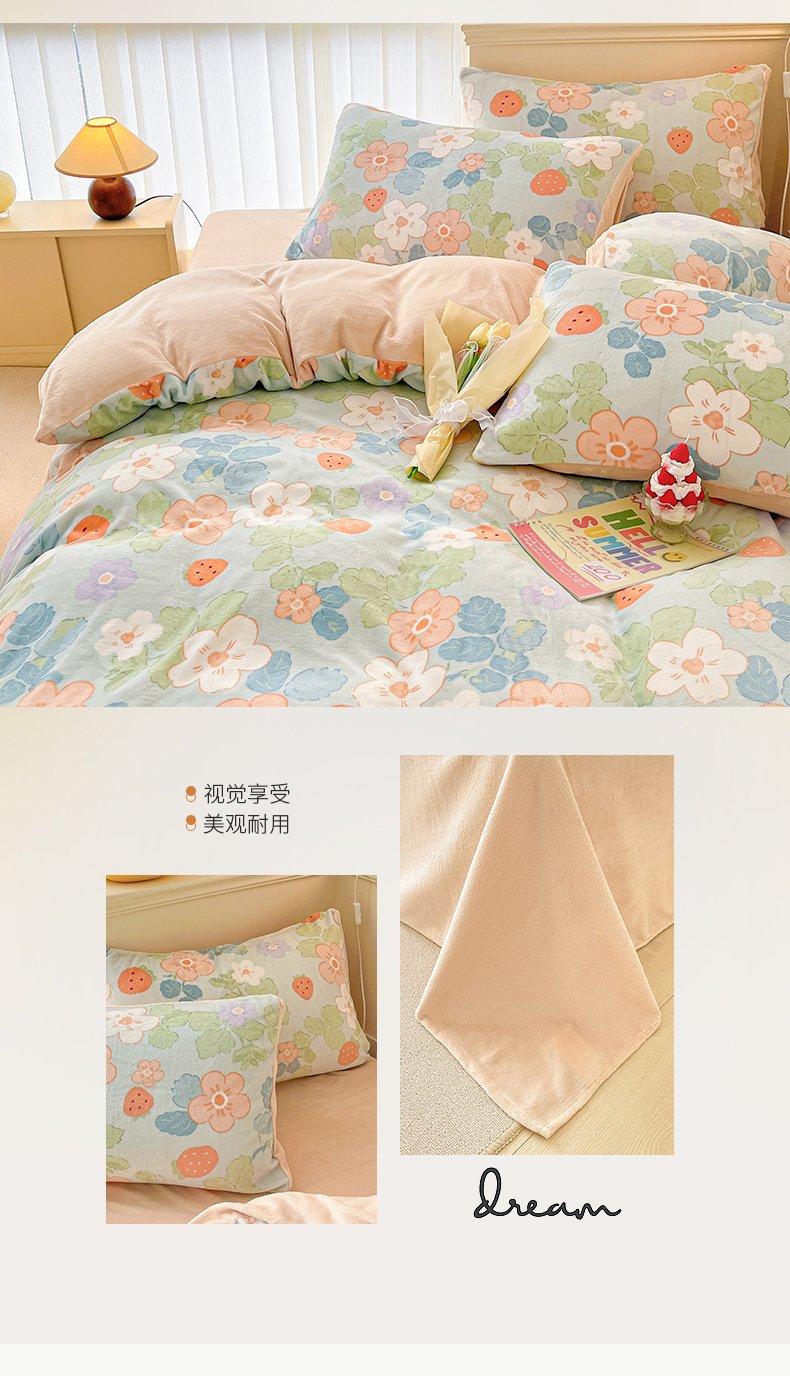 桃子 2023新款ins小清新韩系卡通少女心奶油兔子加厚牛奶绒系列四件套-第一批 绒-觅香