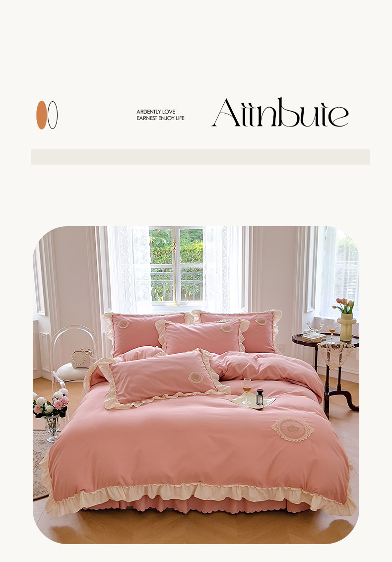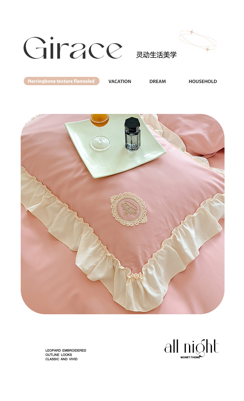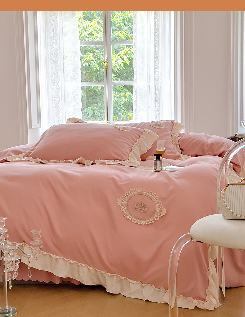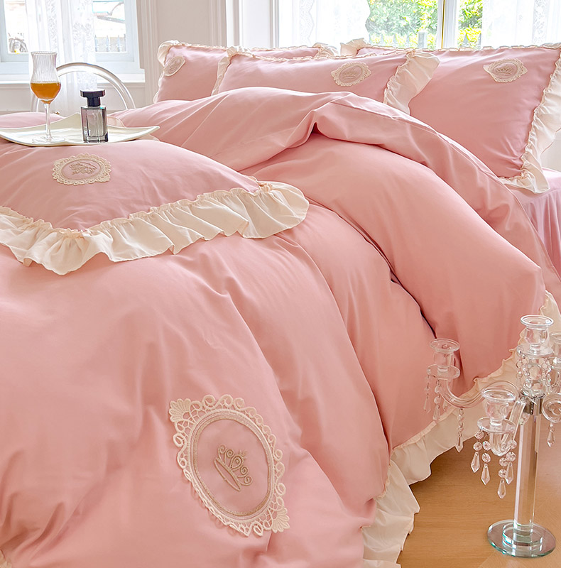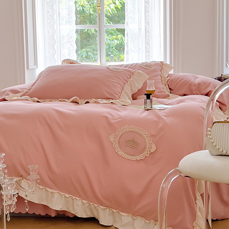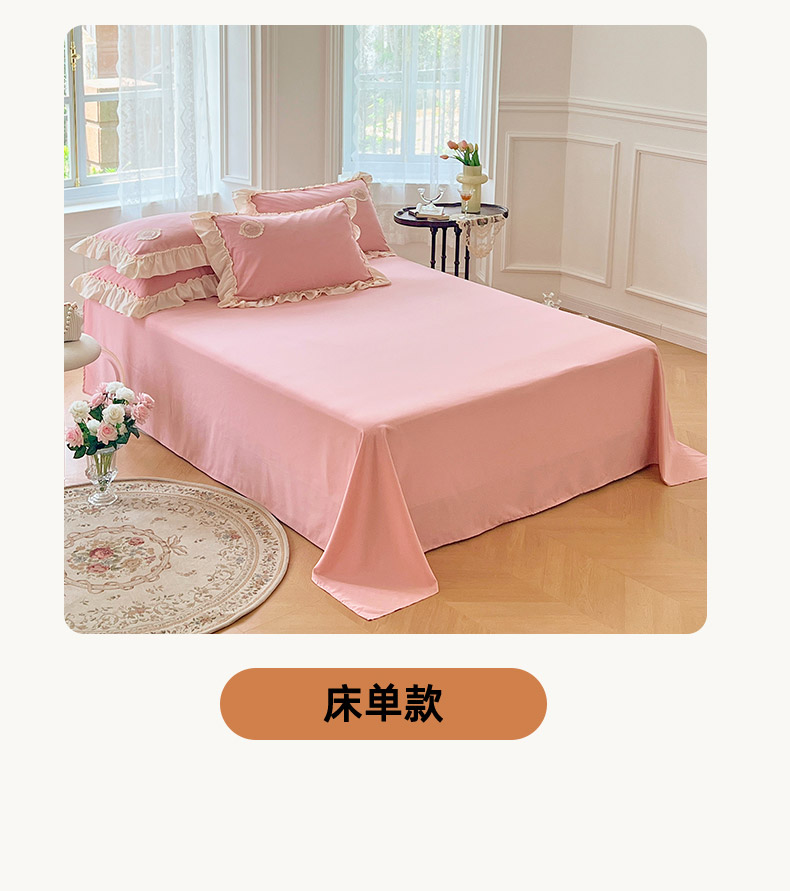 当前位置: 91家纺网 > 商品网购 > 床品套件 > 四件套 > 普通磨毛四件套 > yyds网供 2023新款韩版皇冠花边款公主风床单款床裙款四件套-风格一【有买家秀】 皇冠-淑女粉