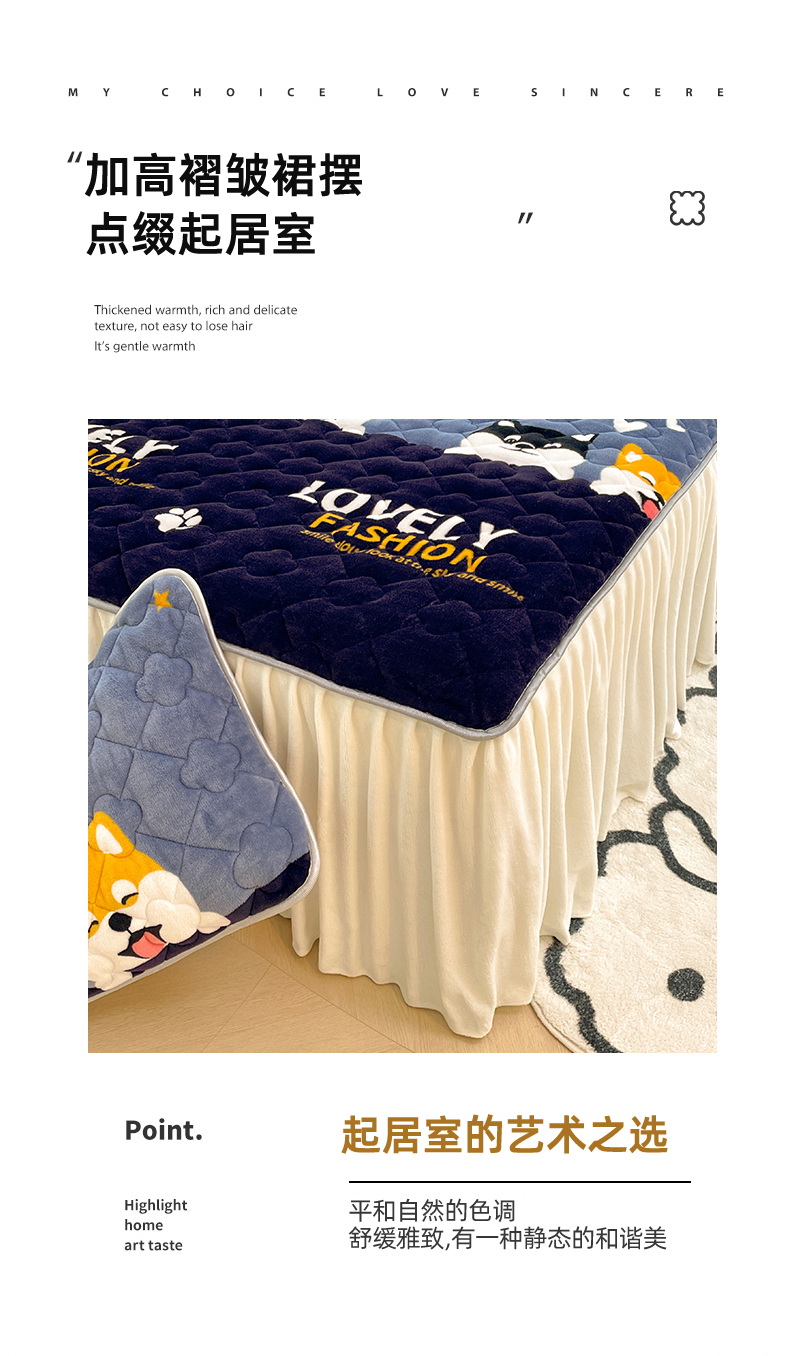 180x200牛奶绒夹棉床裙