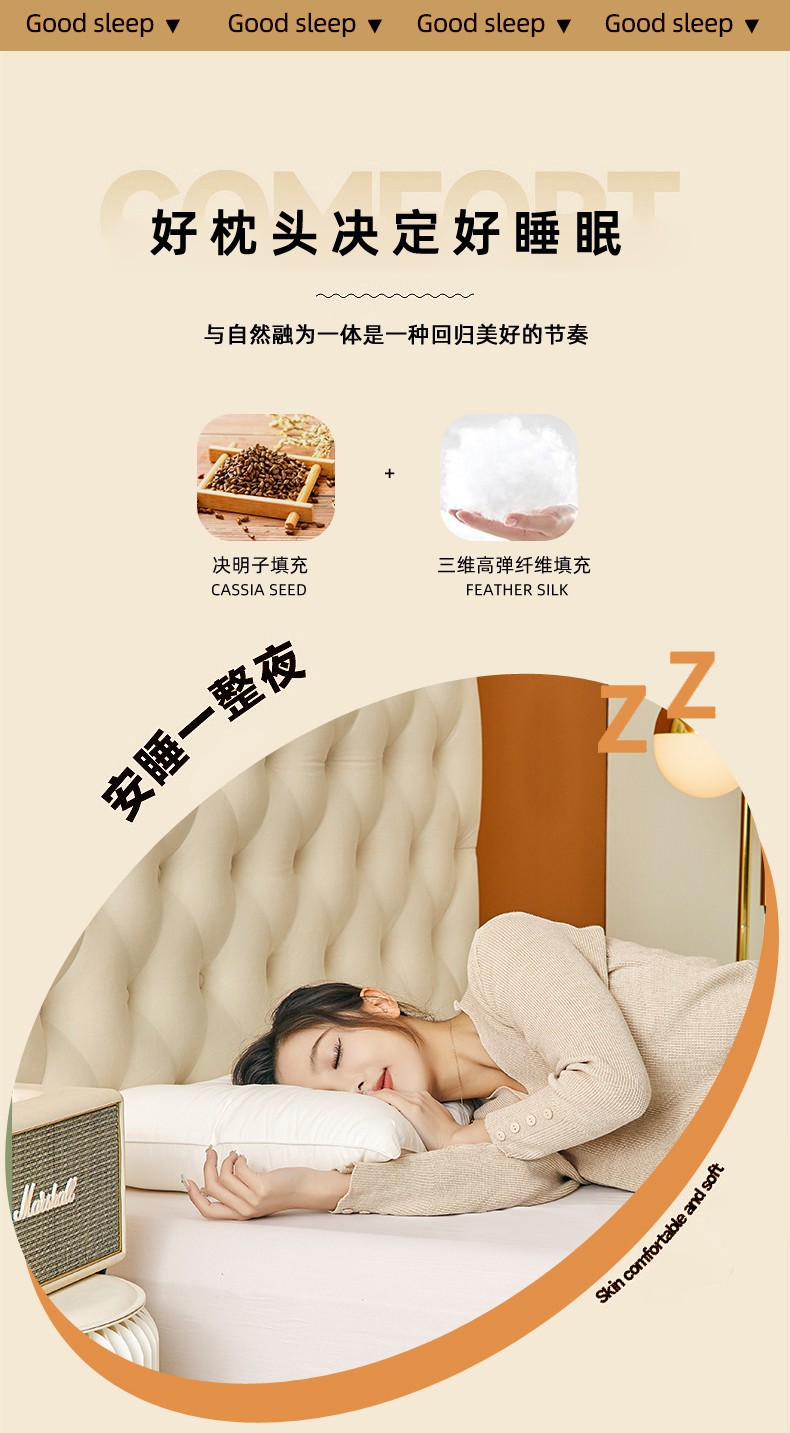 (总)唯爱品 2026新款 A类棉水洗决明子护颈枕枕头枕芯 记忆枕源头工厂枕头枕芯 酒店枕护颈枕 记忆枕源头工厂
