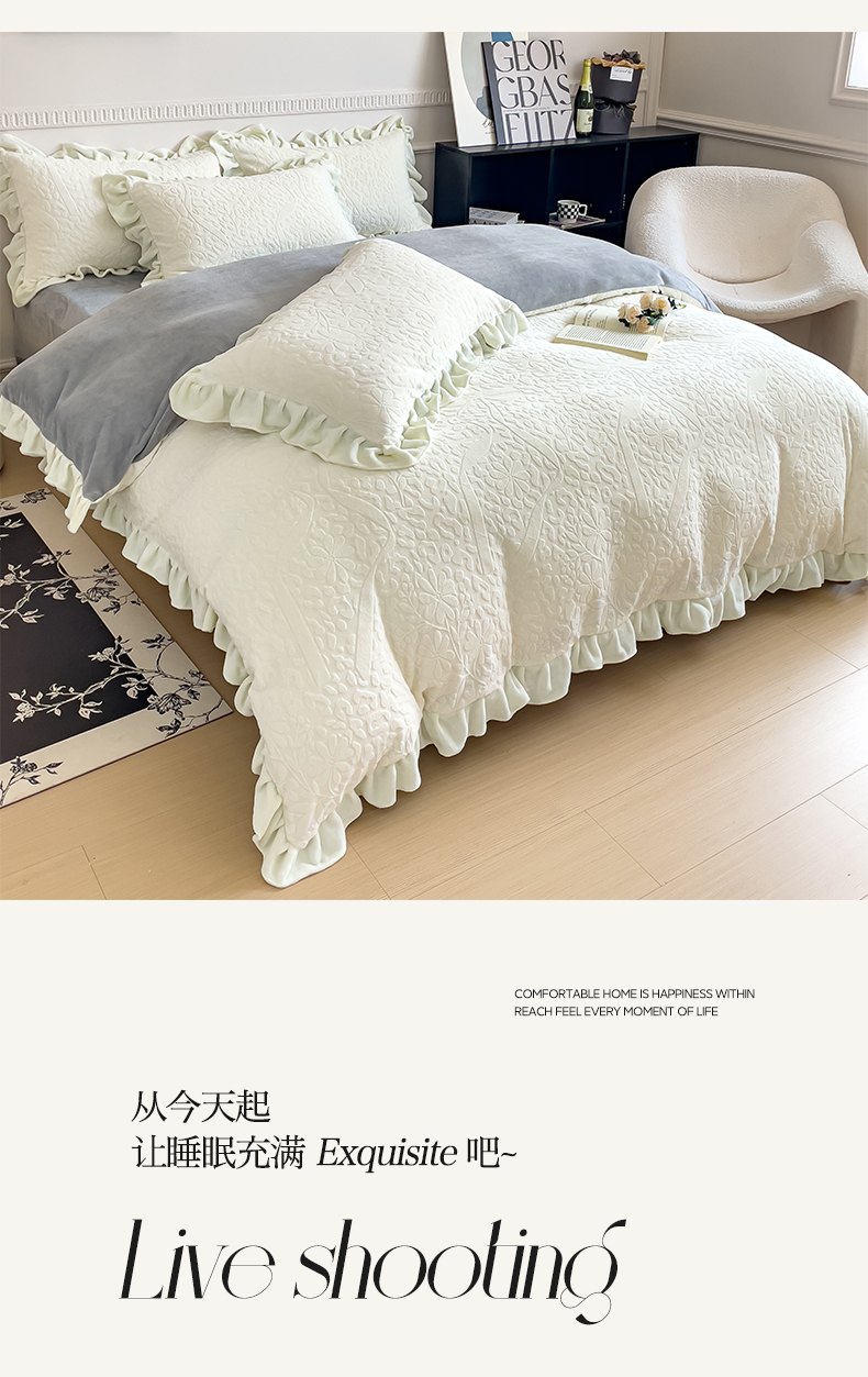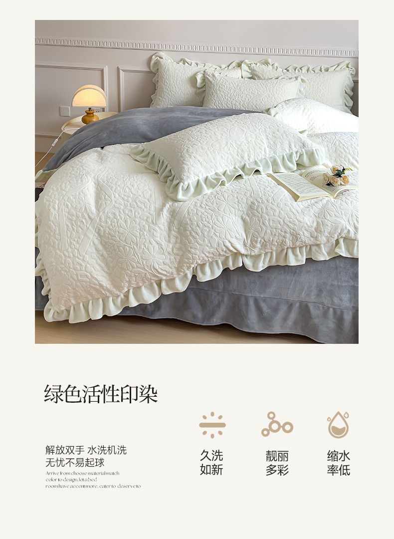 (总)铠畅家纺 2025新款牛奶绒花边床盖四件套-唯美,唯美爵士蓝,唯美香草绿,唯美香妃玉,唯美星辰灰,唯美星空紫,唯美珍珠白