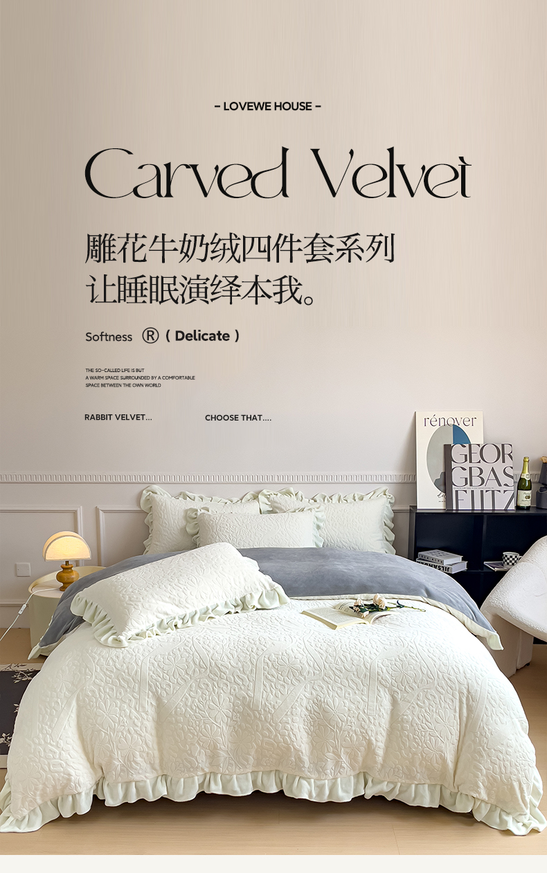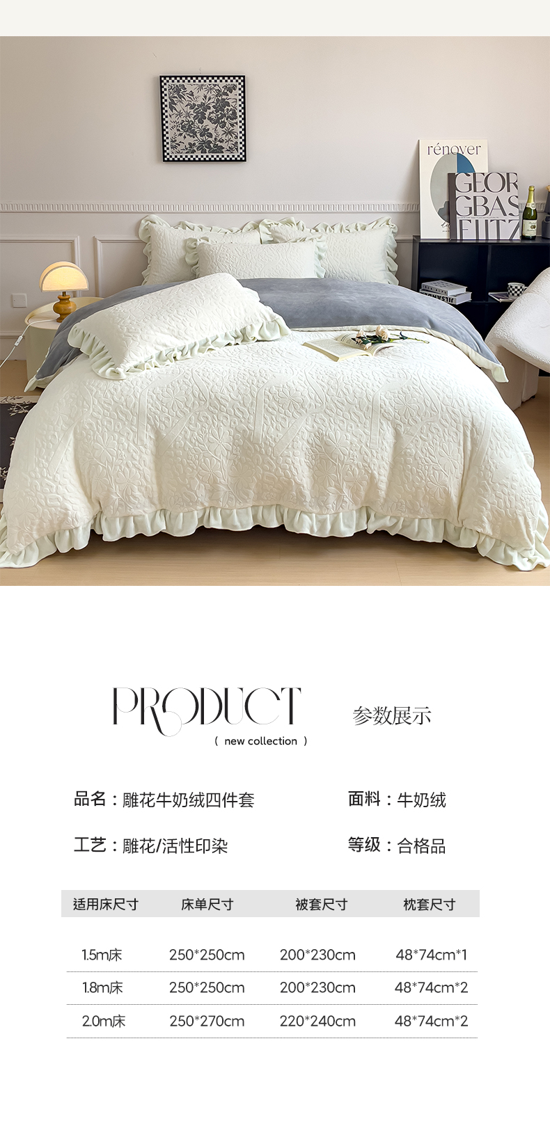 总铠畅日产万套9斤欧式烂花A类5D雕花牛奶绒床裙四件套法莱绒,法式浪漫白,法式浪漫宝石蓝,法式浪漫粉玉,法式浪漫高级灰,法式浪漫浅蓝,法式浪漫浅紫,蝴蝶结宝蓝,蝴蝶结豆粉,蝴蝶结高级灰,蝴蝶结奶白,蝴蝶结牛油绿,蝴蝶结紫,理想的爱宝蓝,理想的爱豆粉,理想的爱绿,理想的爱奶白,理想的爱质感灰,理想的爱紫,流年匆匆宝石蓝,流年匆匆豆粉,流年匆匆奶白,流年匆匆牛油绿,流年匆匆质感灰,流年匆匆紫,米熊白,米熊宝蓝,米熊粉玉,米熊灰,米熊浅蓝,米熊浅紫,如梦宝蓝,如梦豆沙,如梦高级灰,瑞祥宝蓝,瑞祥豆沙,瑞祥高级灰