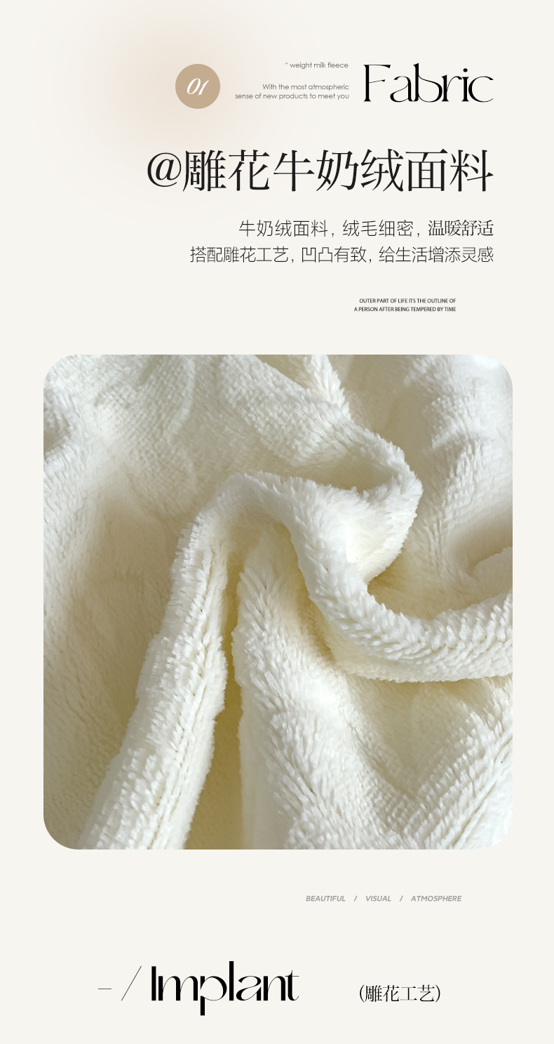 铠畅家纺 2023新款花边雕花牛奶绒四件套-飘逸系列 飘逸-白