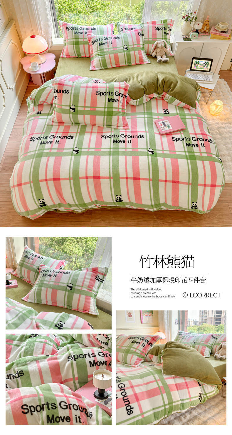 商品名称:花伞 2024新款加厚牛奶绒保暖四件套 竹林熊猫