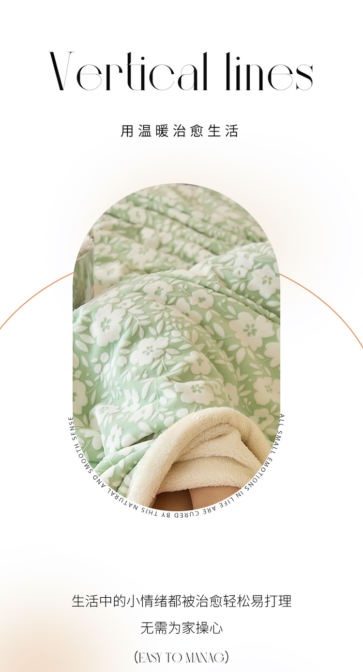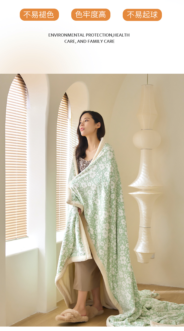 三层加厚冬用毛毯被子保暖牛奶绒珊瑚绒午睡毯冬季绒毯 -绿,欣欣向荣-棕绿
