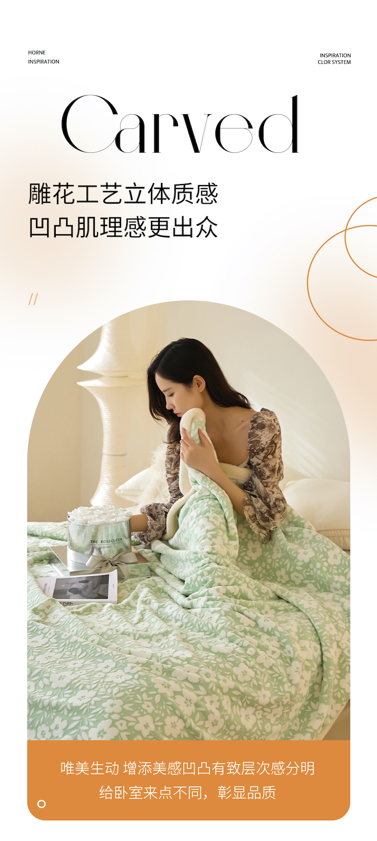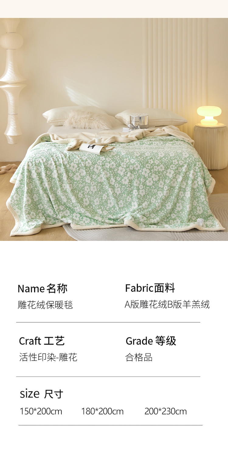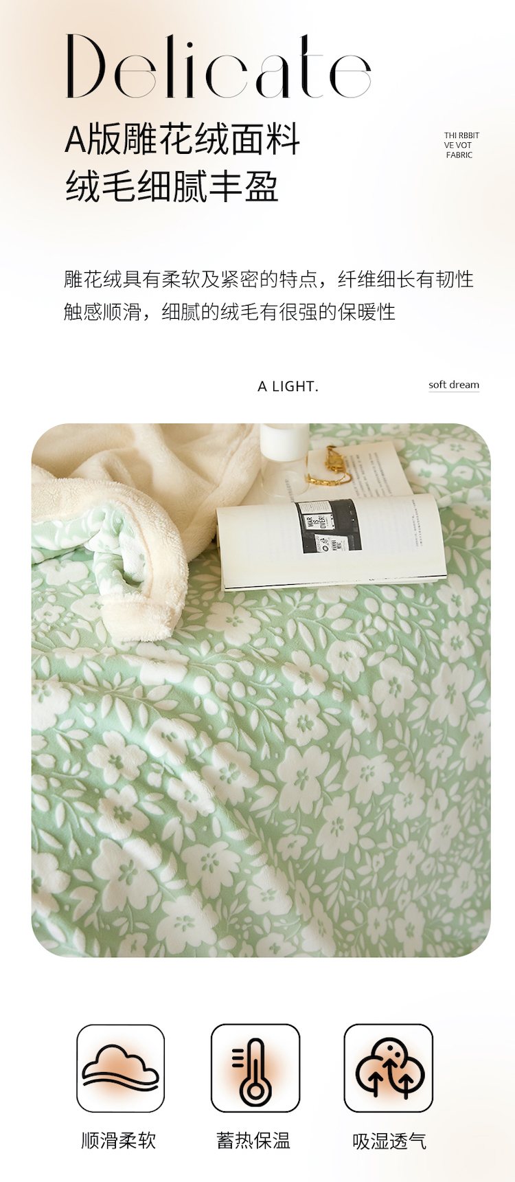 商品名称:铭动 2023新款雕花绒保暖毯-小花毛毯 烟花绿色