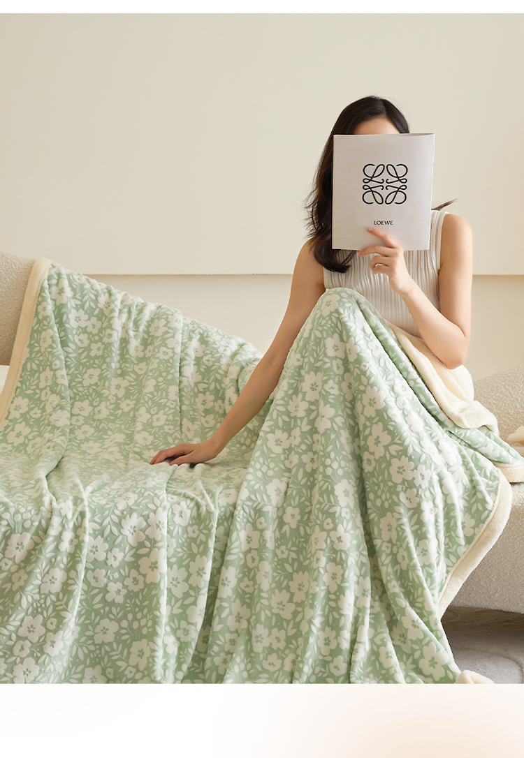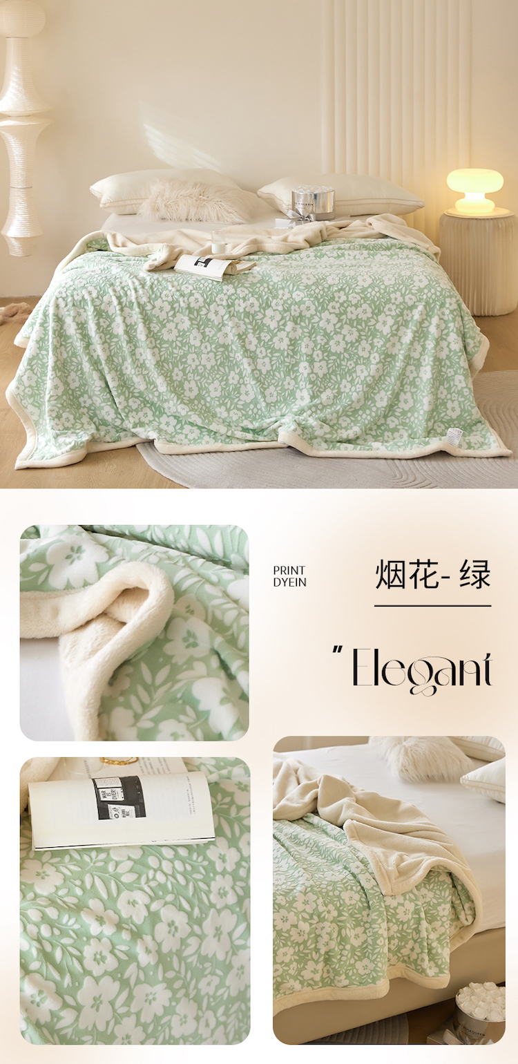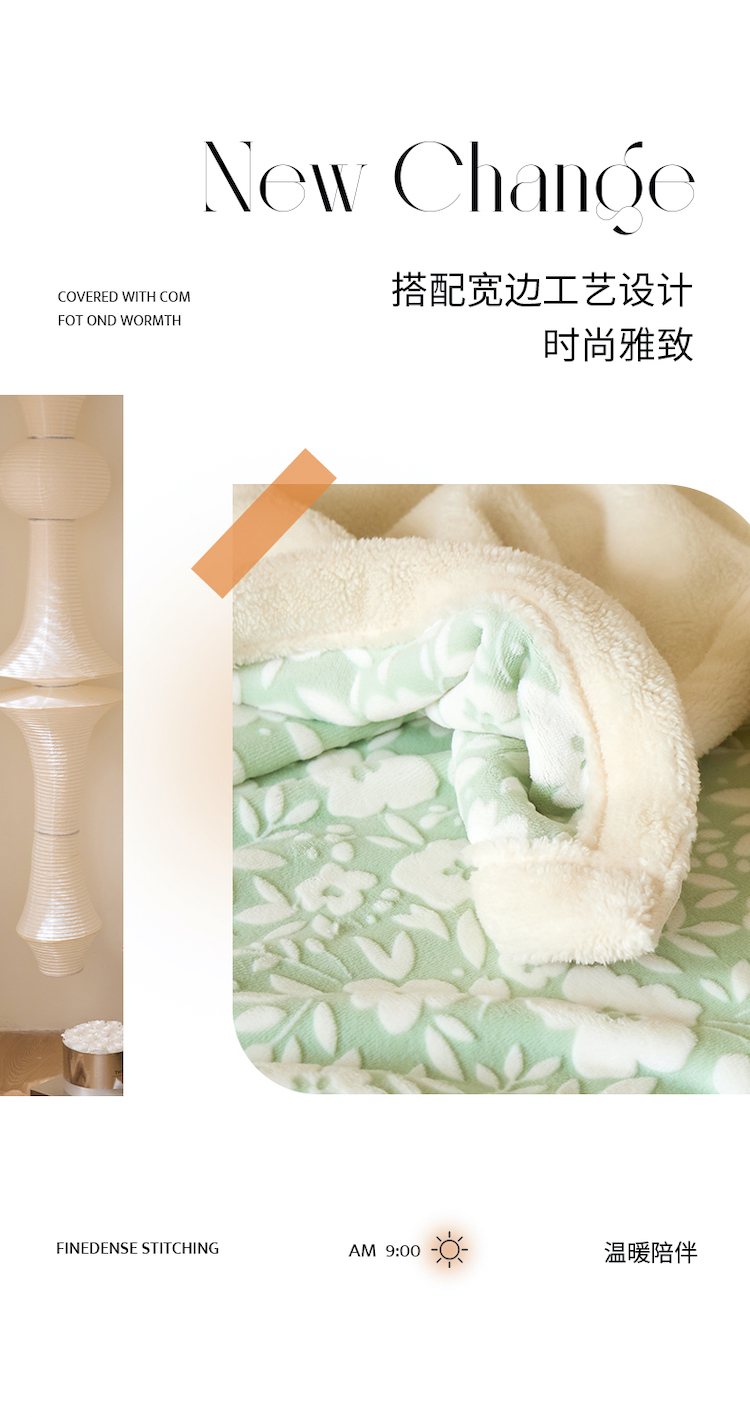 商品名称:铭动 2023新款雕花绒保暖毯-小花毛毯 烟花绿色