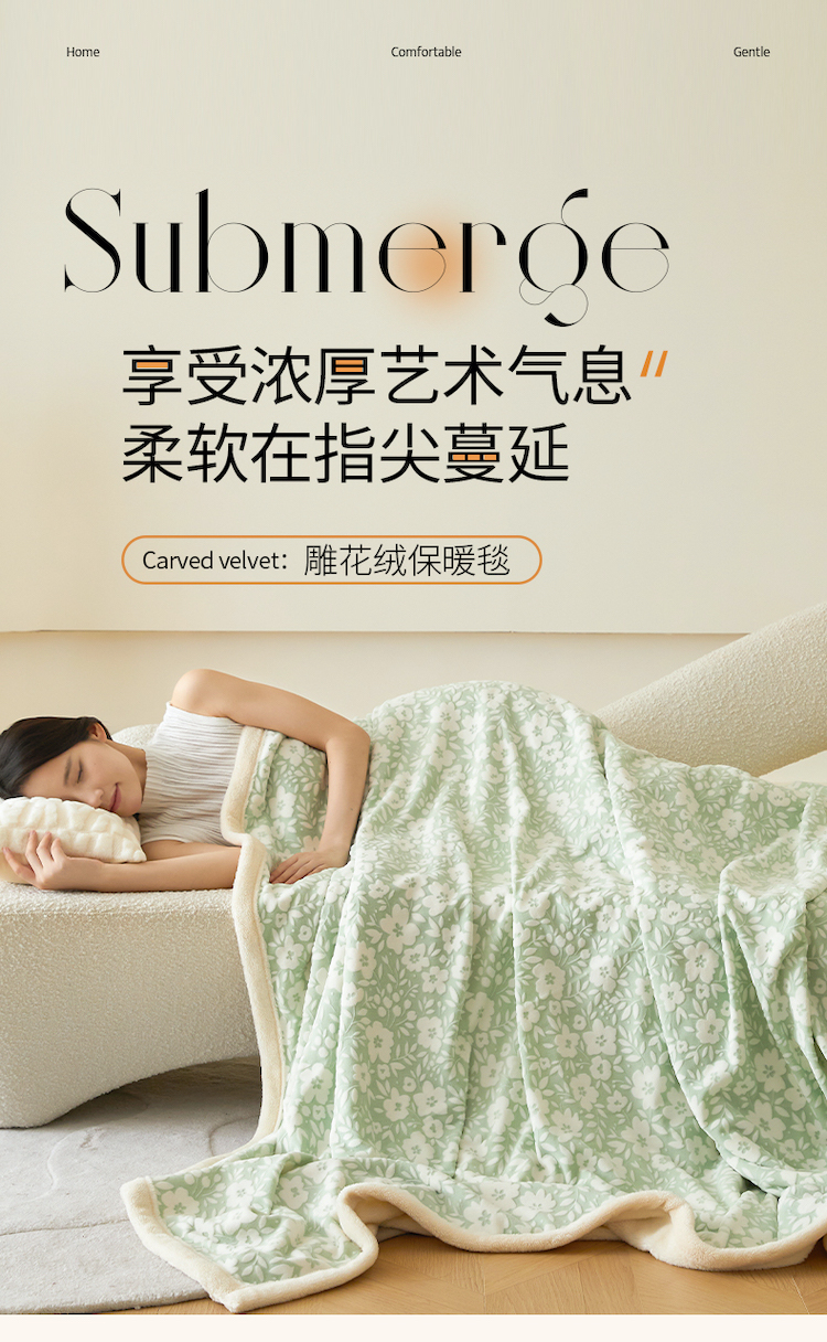 (总)铭动 2024新款雕花绒保暖毯-悠若毛毯,粉,卡其,蓝,绿