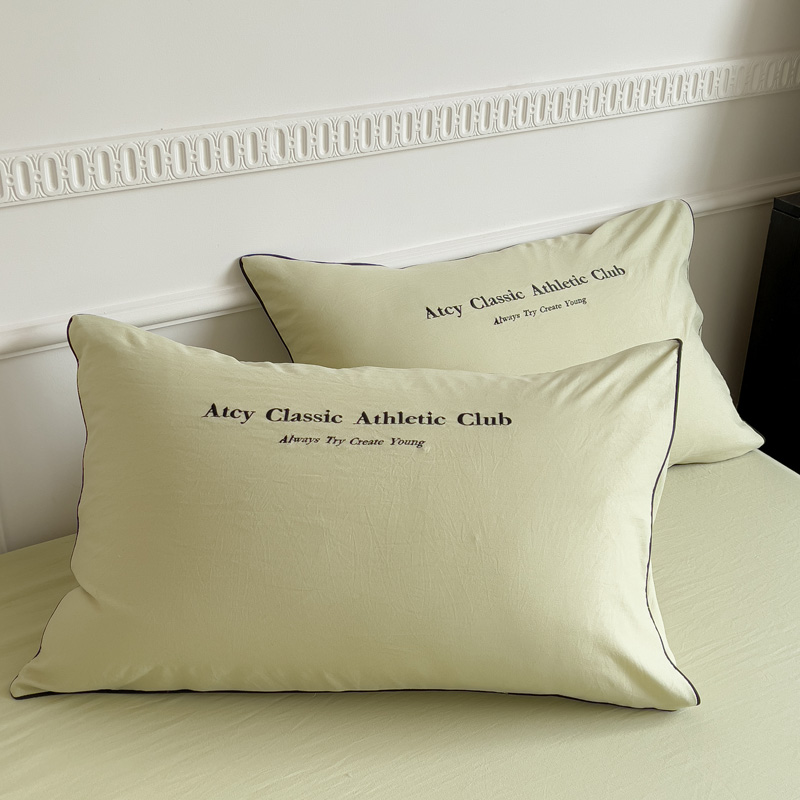 尤米 2023新款莫奈系列水洗棉绣花麻绳款枕套 莫奈-抹茶绿