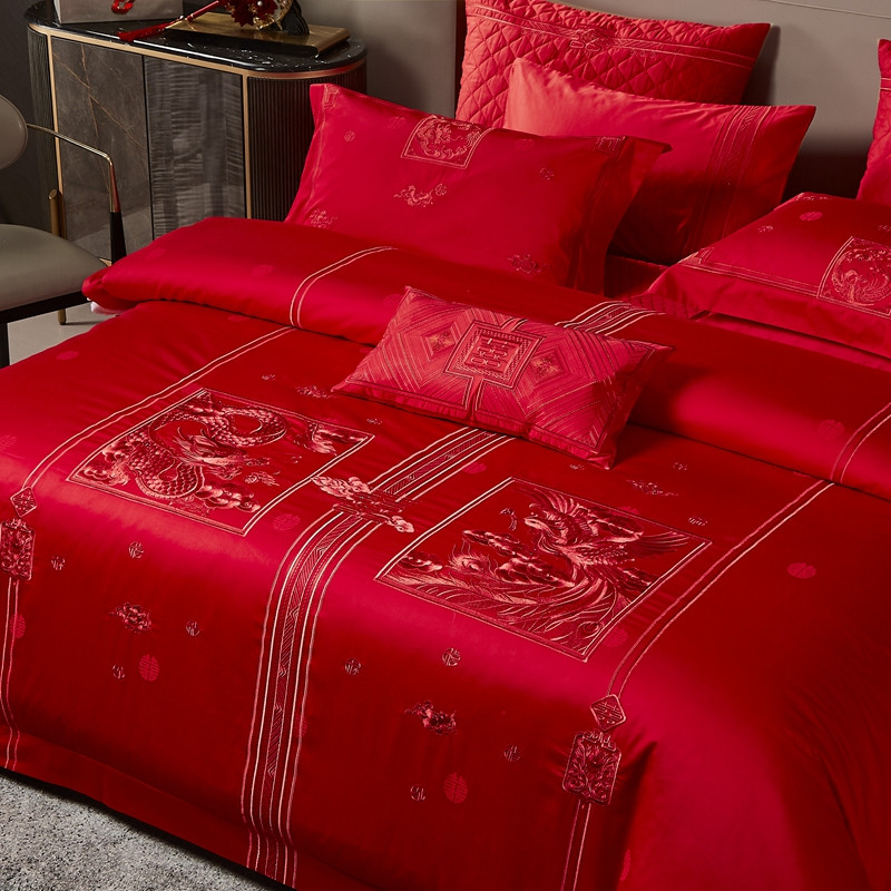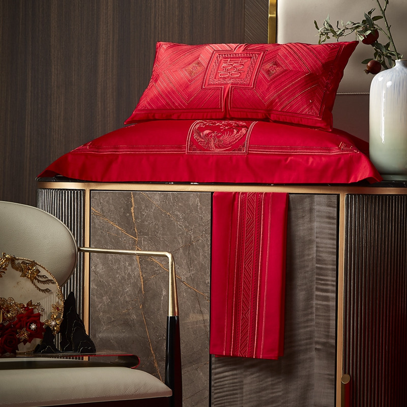 当前位置: 91家纺网 > 商品网购 > 床品套件 > 四件套 > 婚庆四件套 > 爱情故事 2025新款100支婚庆四件套棚拍福禄寿喜红