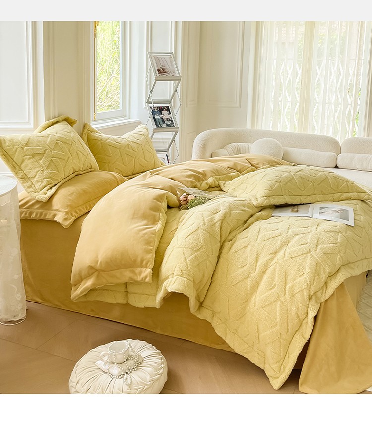 商品名称:呗旺鹿 2023新款高克重纯色剪花雕花压花提花牛奶绒四件套直播 格调