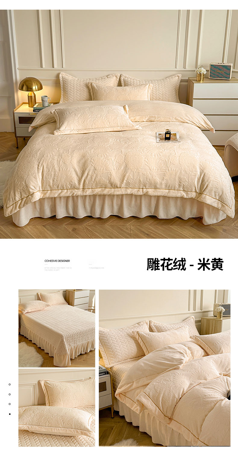 当前位置: 91家纺网 > 商品网购 > 床品套件 > 四件套 > 雕花绒四件套 > 金艾草 2023新款牛奶绒立体雕花夹棉床盖四件套 雕花绒-米黄色