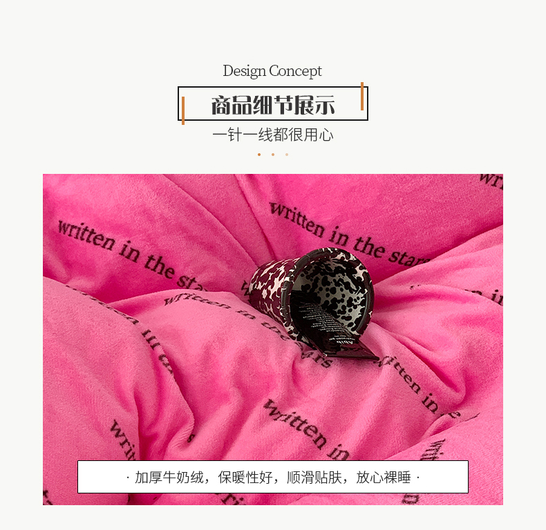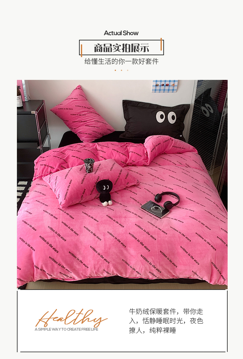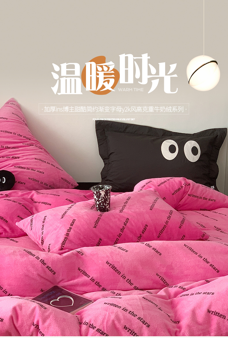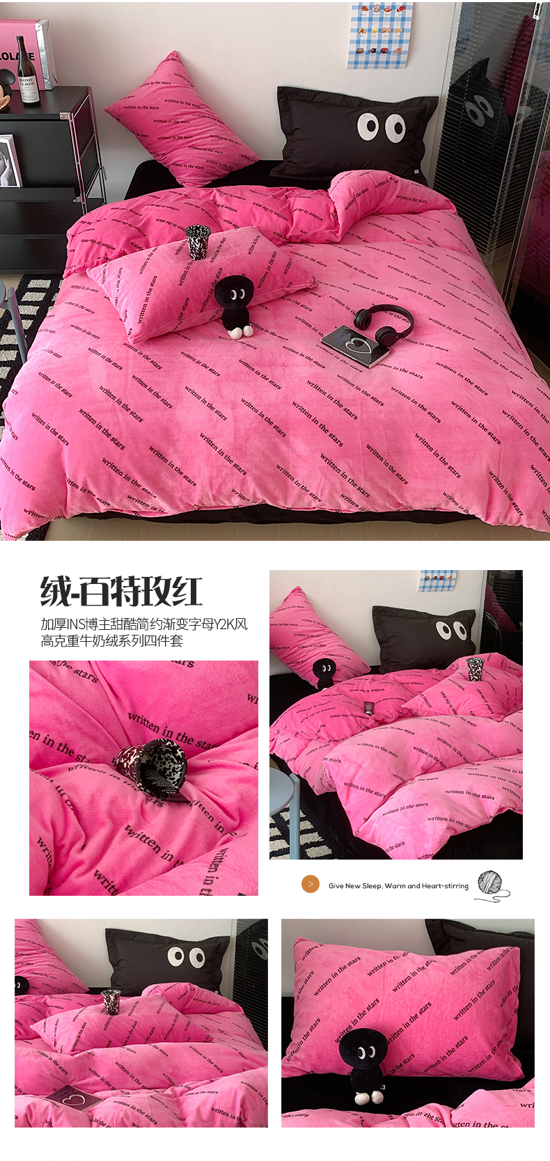 当前位置: 91家纺网 > 商品网购 > 床品套件 > 四件套 > 牛奶绒四件套 > 桃子家居 2023新款ins甜酷渐变字母y2k风高克重牛奶绒四件套 绒-百特玫红