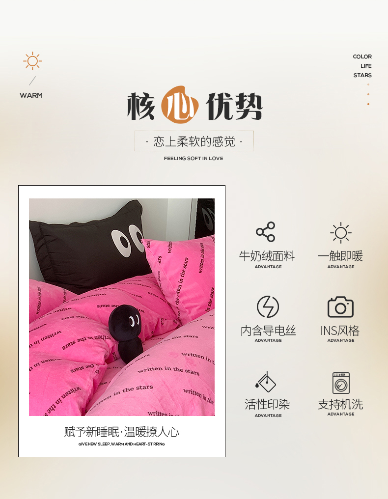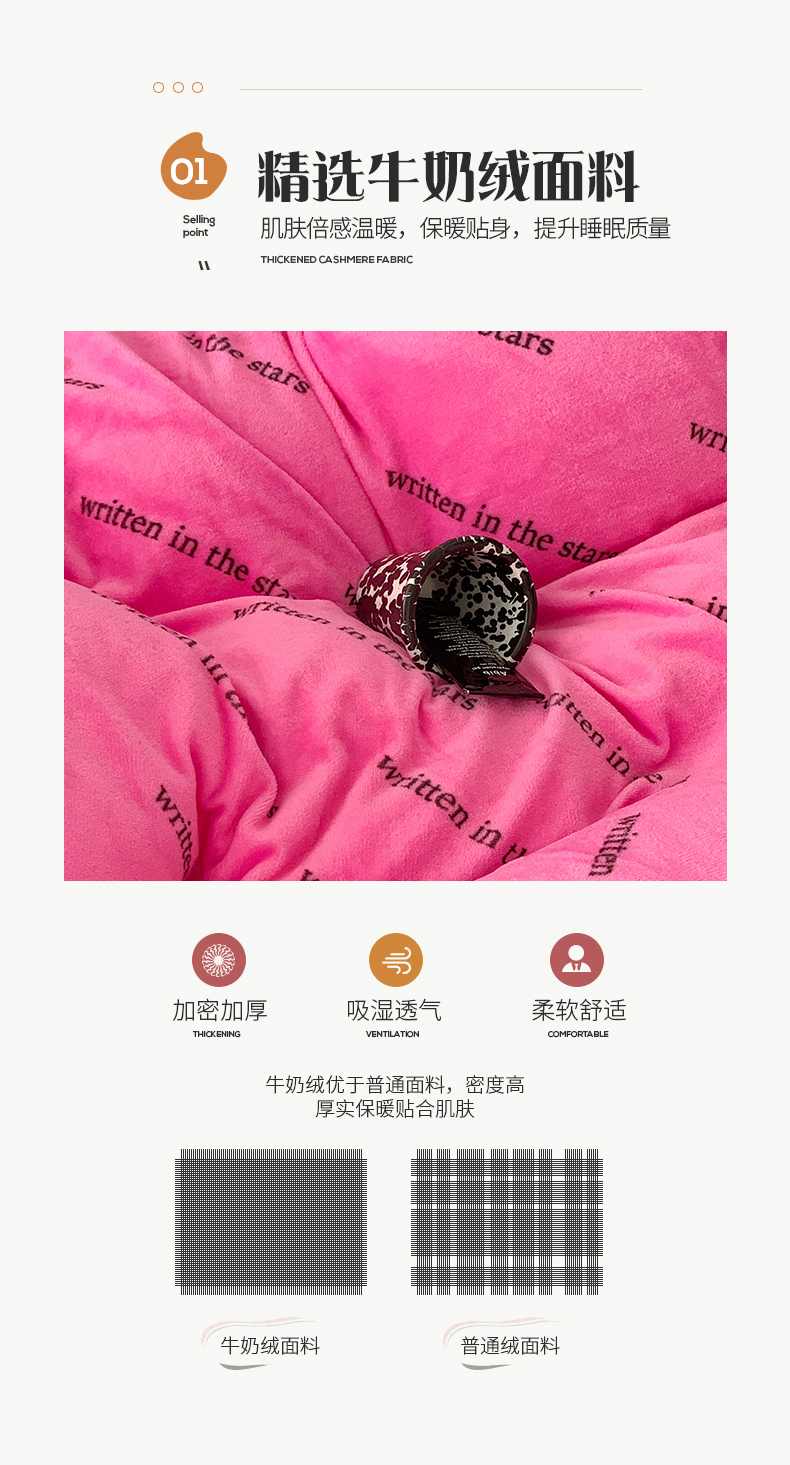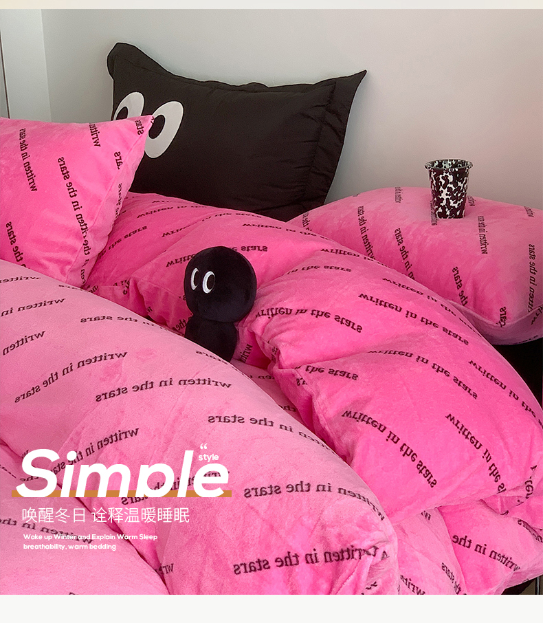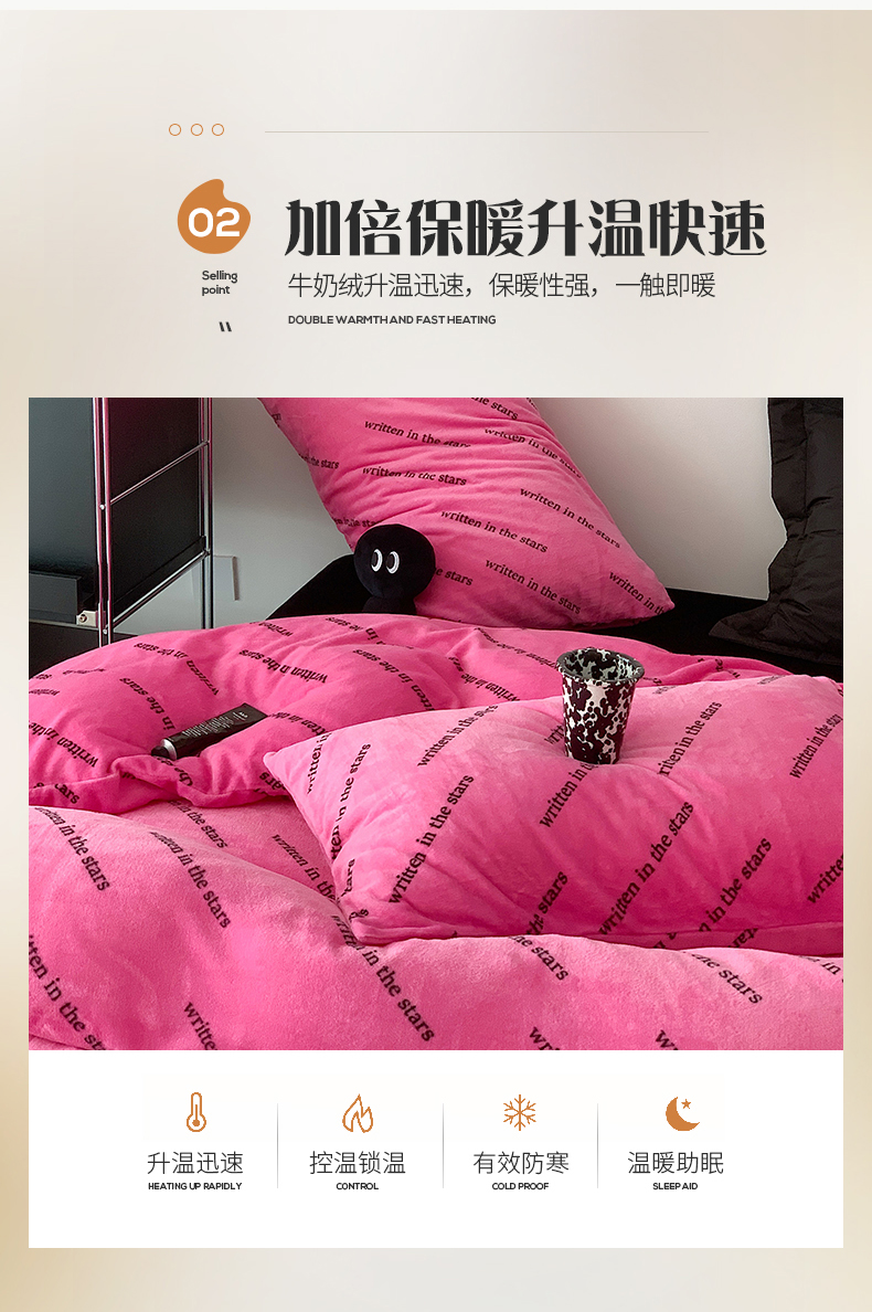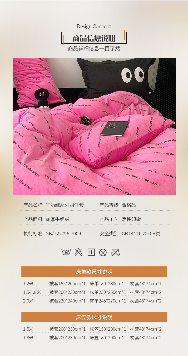 当前位置: 91家纺网 > 商品网购 > 床品套件 > 四件套 > 牛奶绒四件套 > 桃子家居 2023新款ins甜酷渐变字母y2k风高克重牛奶绒四件套 绒-百特玫红