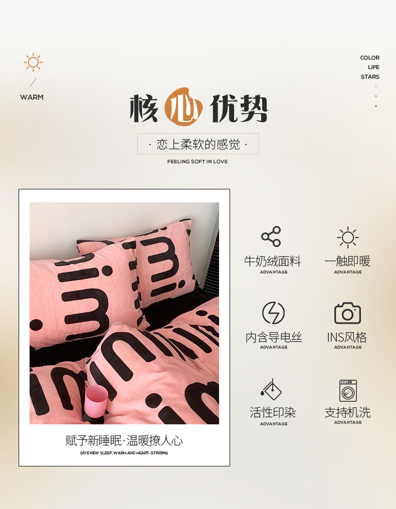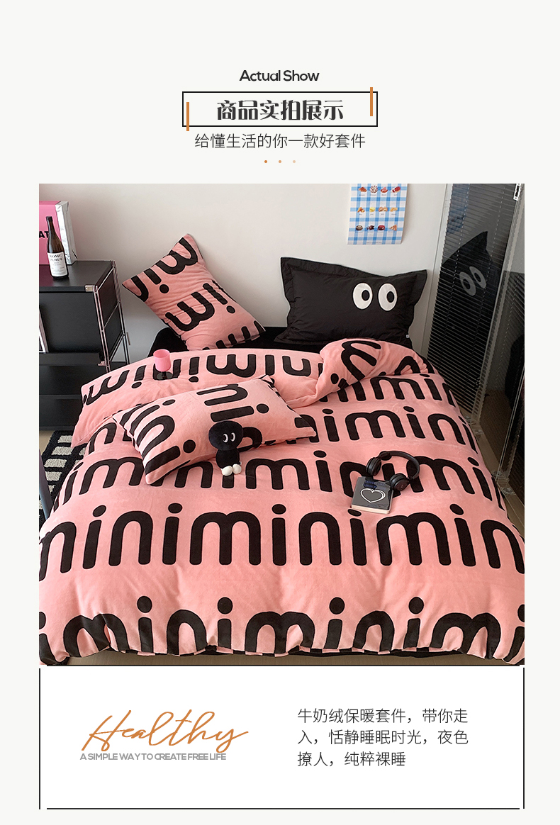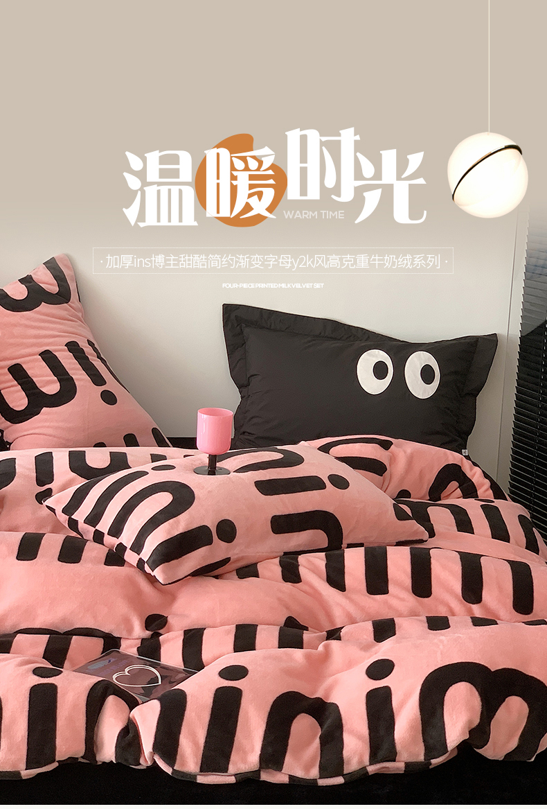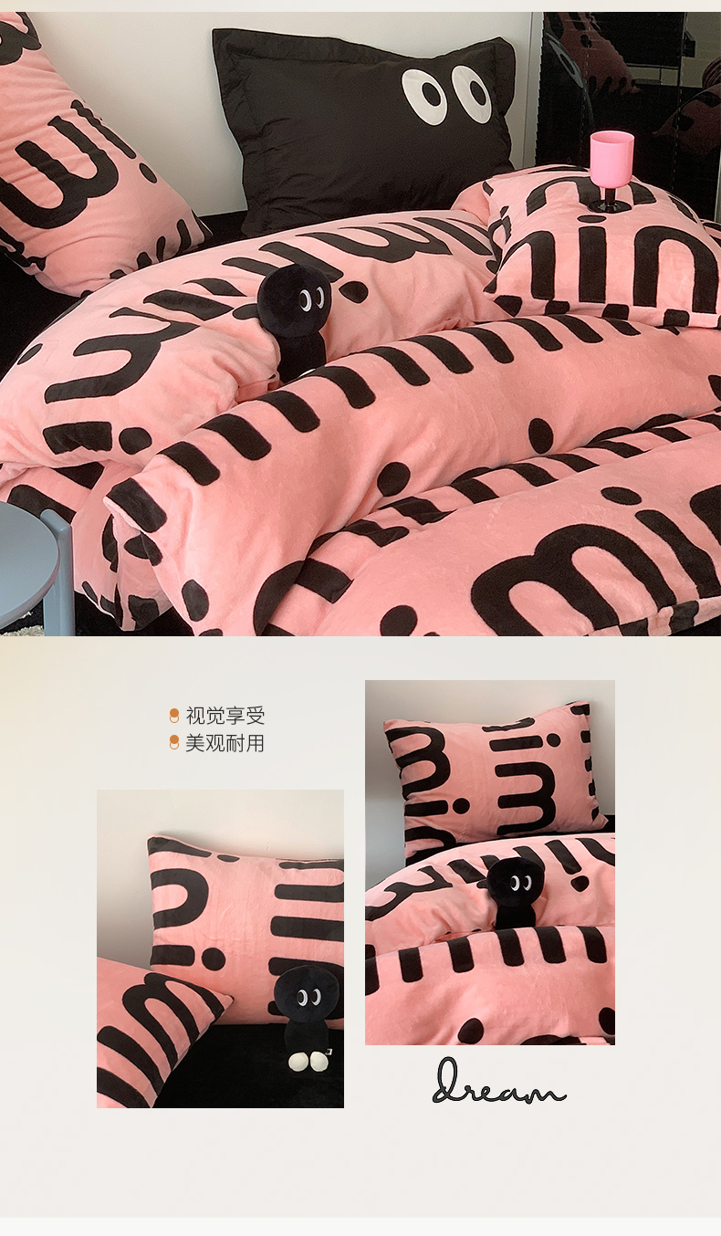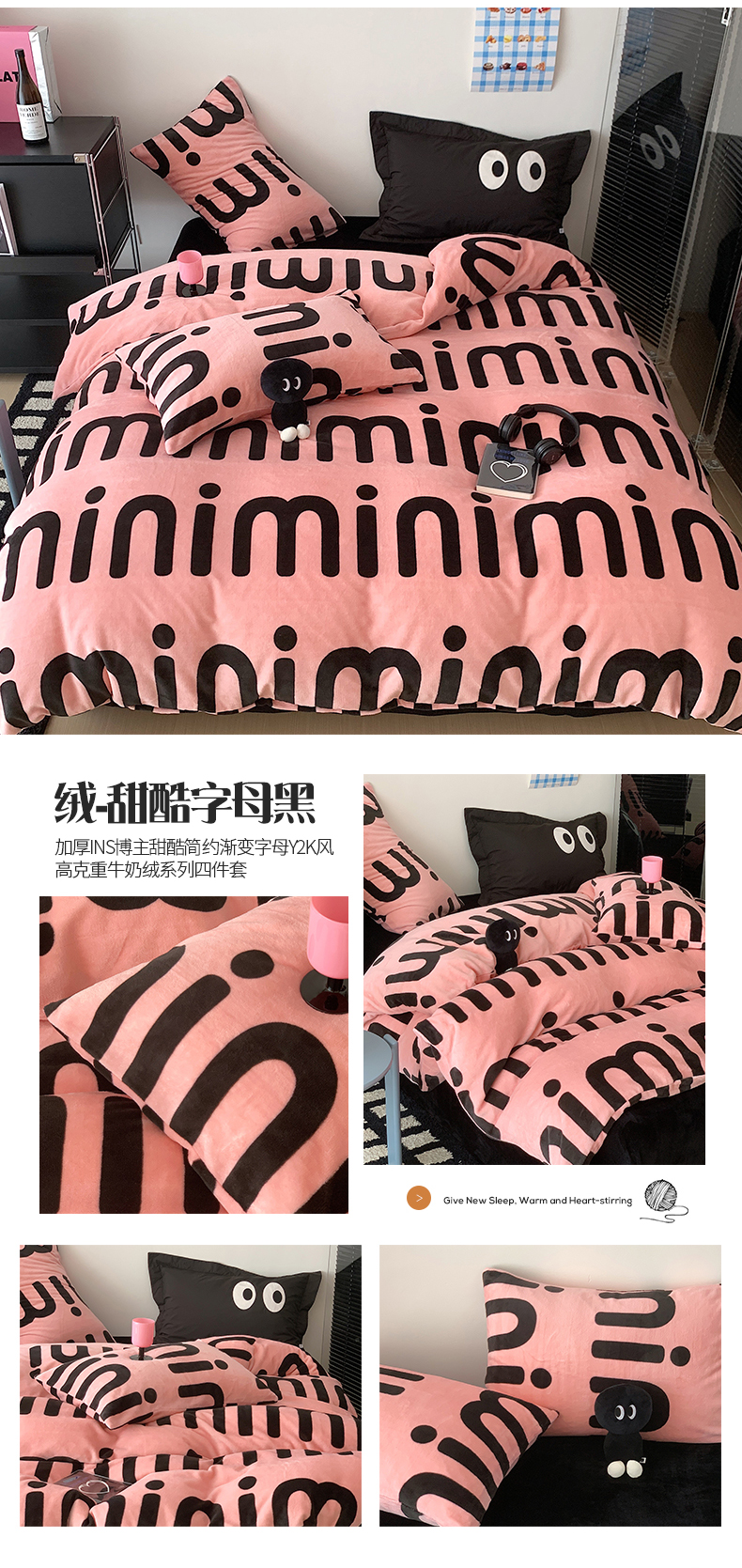 当前位置: 91家纺网 > 商品网购 > 床品套件 > 四件套 > 牛奶绒四件套 > 桃子家居 2023新款ins甜酷渐变字母y2k风高克重牛奶绒四件套 绒-甜酷字母黑