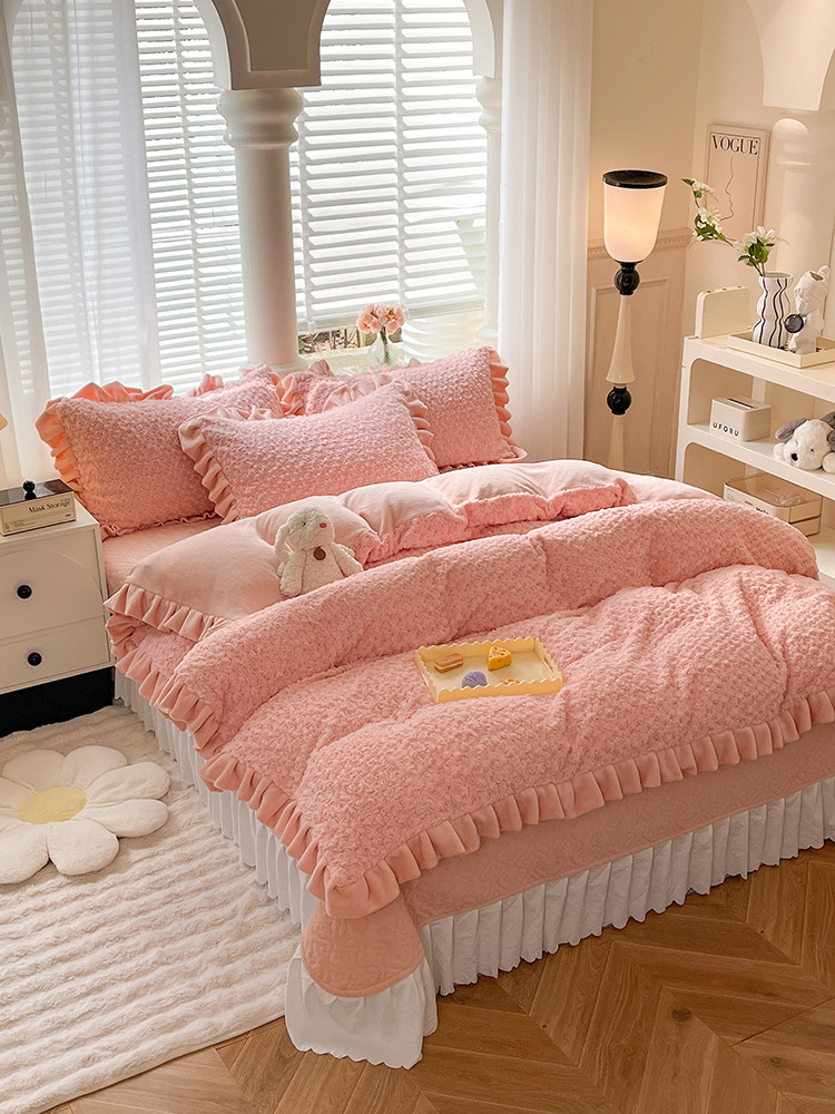 当前位置: 91家纺网 > 商品网购 > 床品套件 > 四件套 > 兔毛绒四件套 > 韩约2023新款1母婴级兔兔绒牛奶绒韩版四件套 兔兔绒-爱恋(粉玉)
