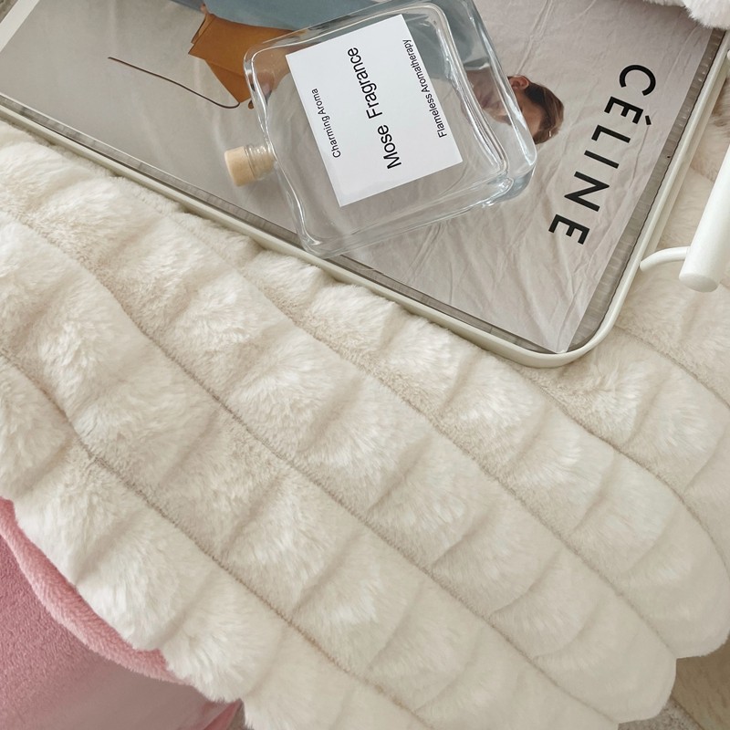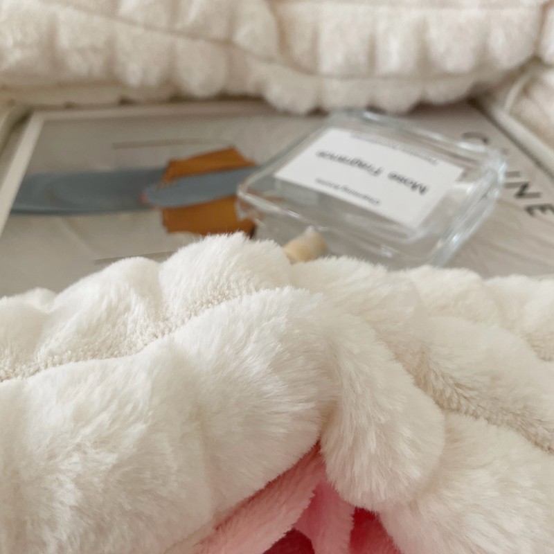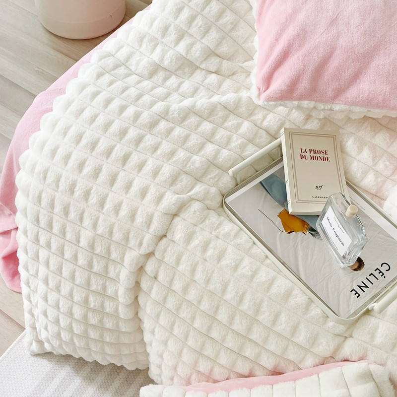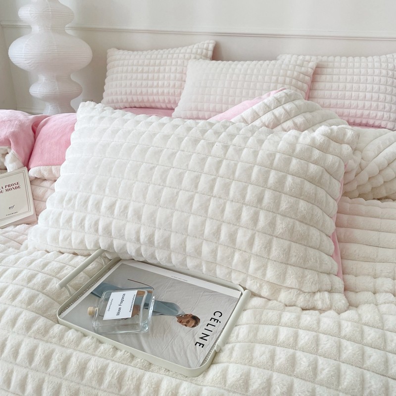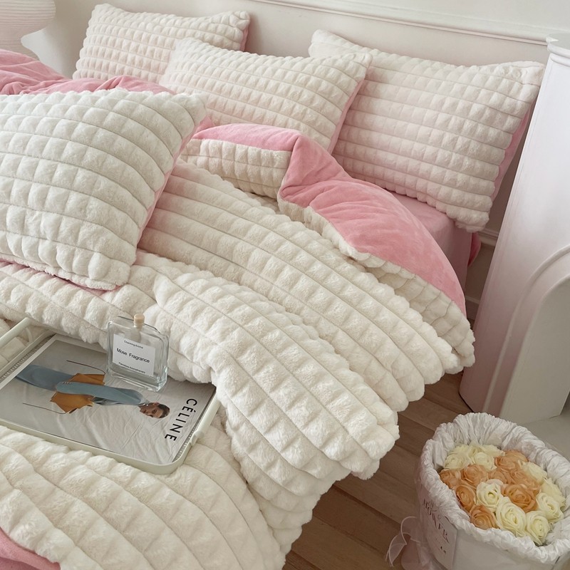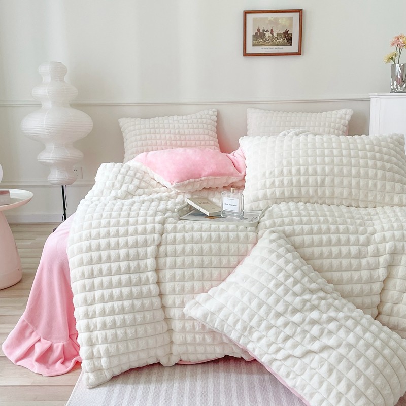商品名称:畅畅家纺 2023新款兔毛绒兔兔绒懒兔绒立体剪花牛奶绒四件套 泡芙格-白+粉