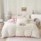 畅畅家纺 2023新款兔毛绒兔兔绒懒兔绒立体剪花牛奶绒四件套 泡芙格-白+粉