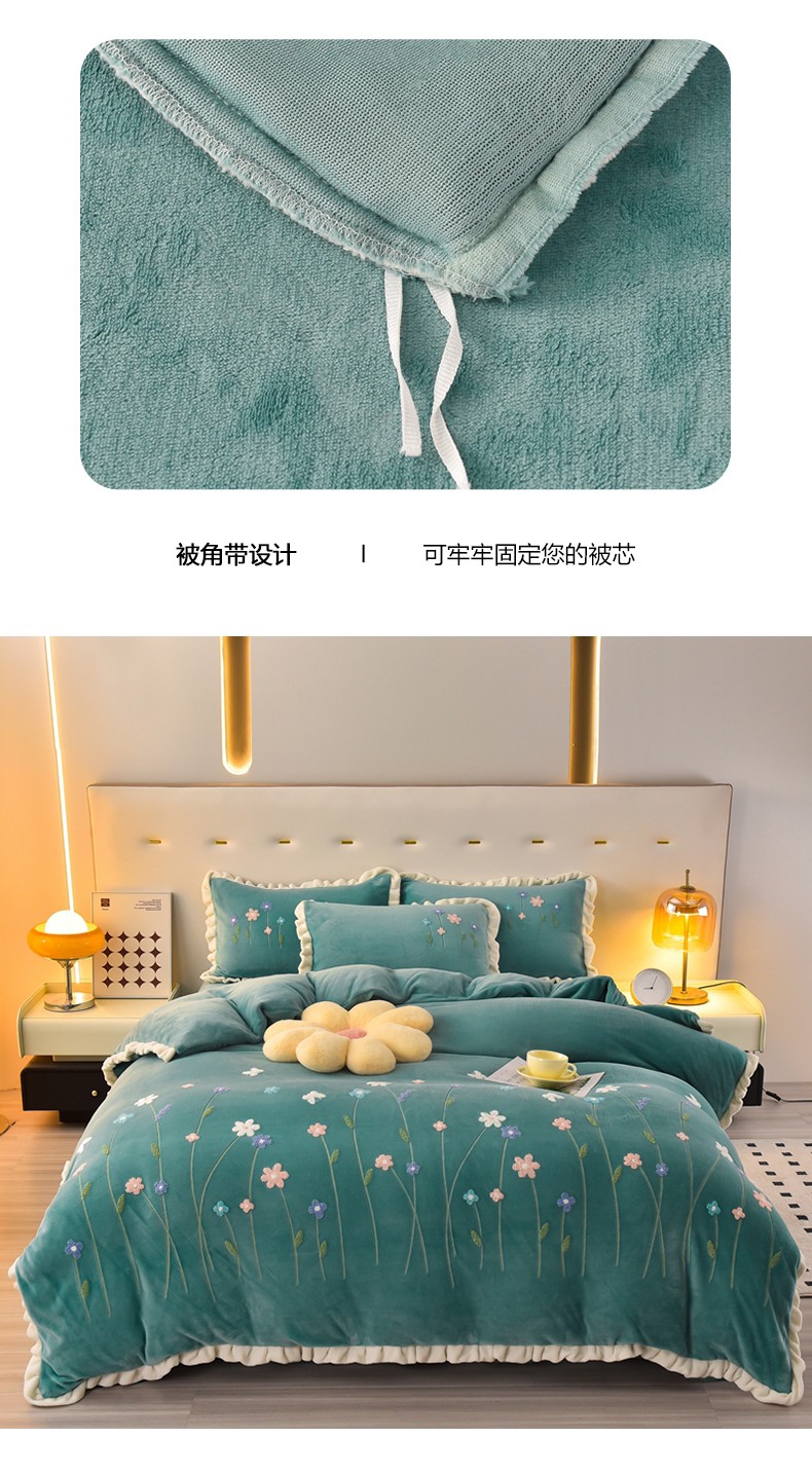 商品名称:畅畅 2024新款加厚韩版花卉牛奶绒刺绣花四件套婴儿兔毛绒繁花似锦 繁花似锦-湖蓝